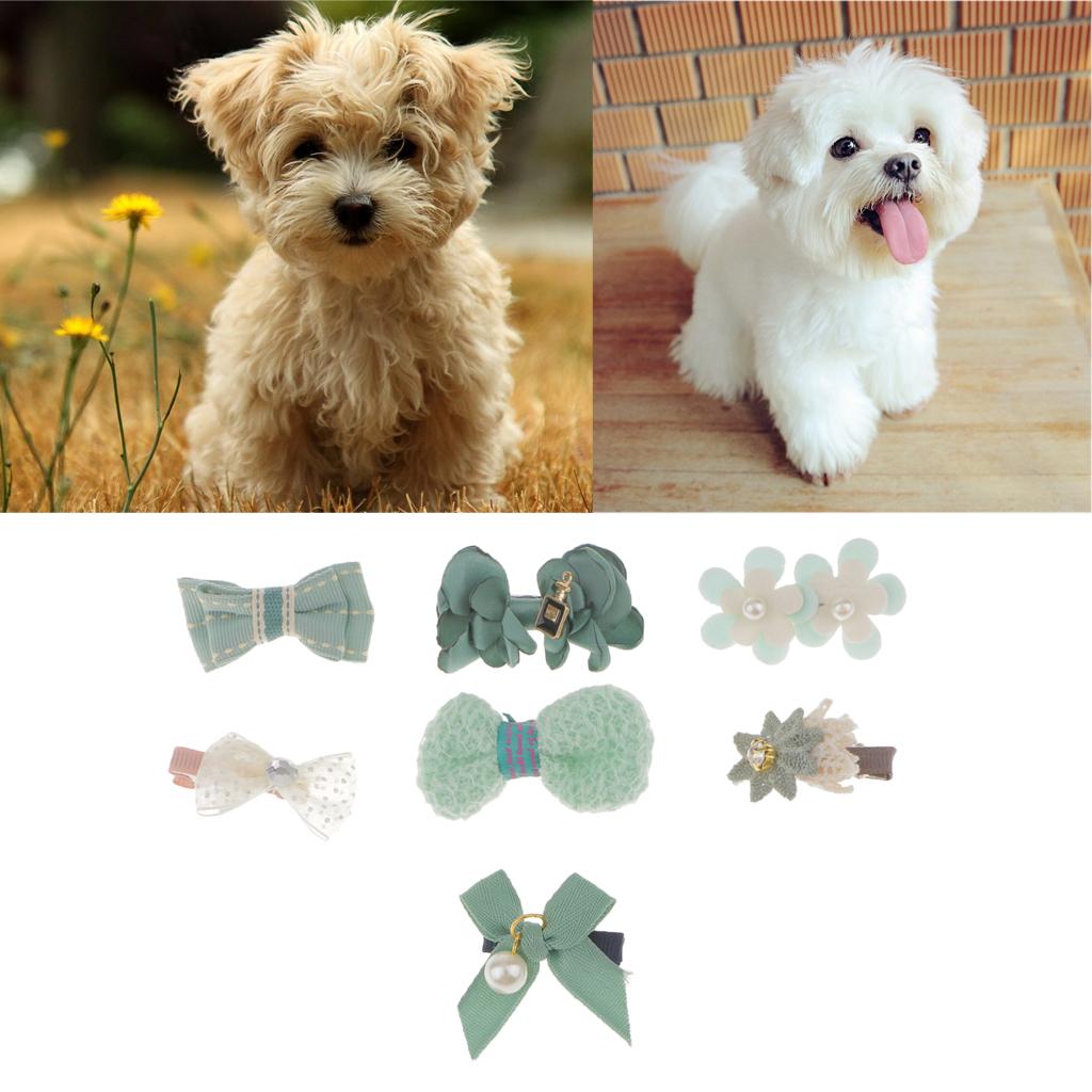 7Pcs/Set Pet Dog Cat Hair Clip Hairpin Headdress Photography Props Hair Decor Hair Grooming Accessories Green