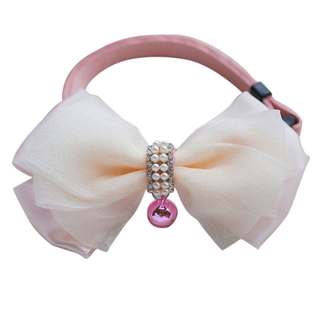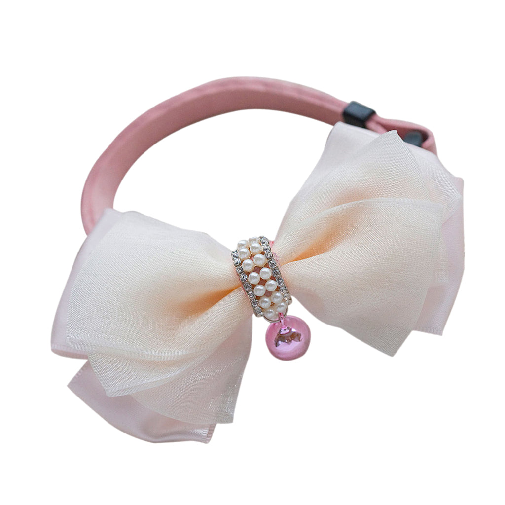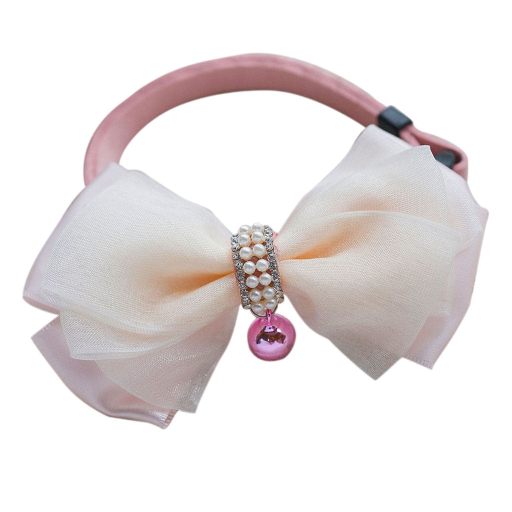 Adjustable Dog Puppy Cat Collar Bowknot Bow Tie Necktie Clothes w/ Bell Pink