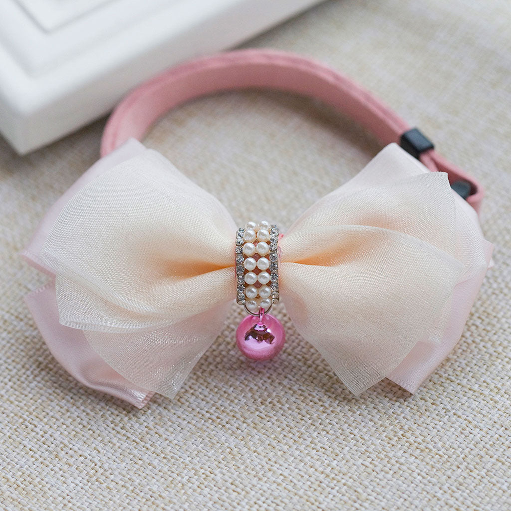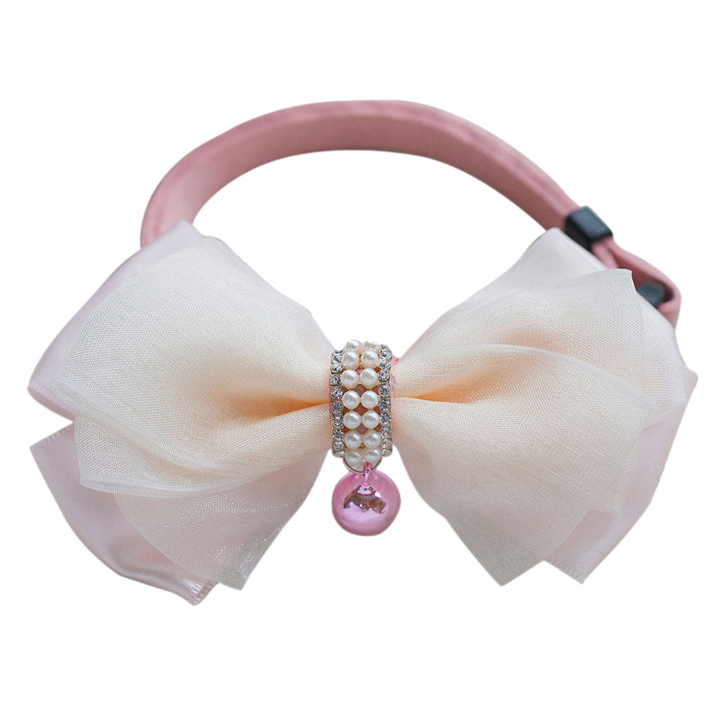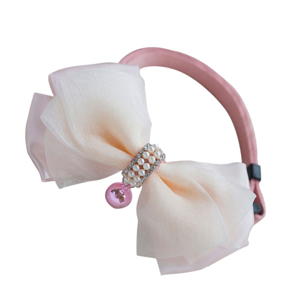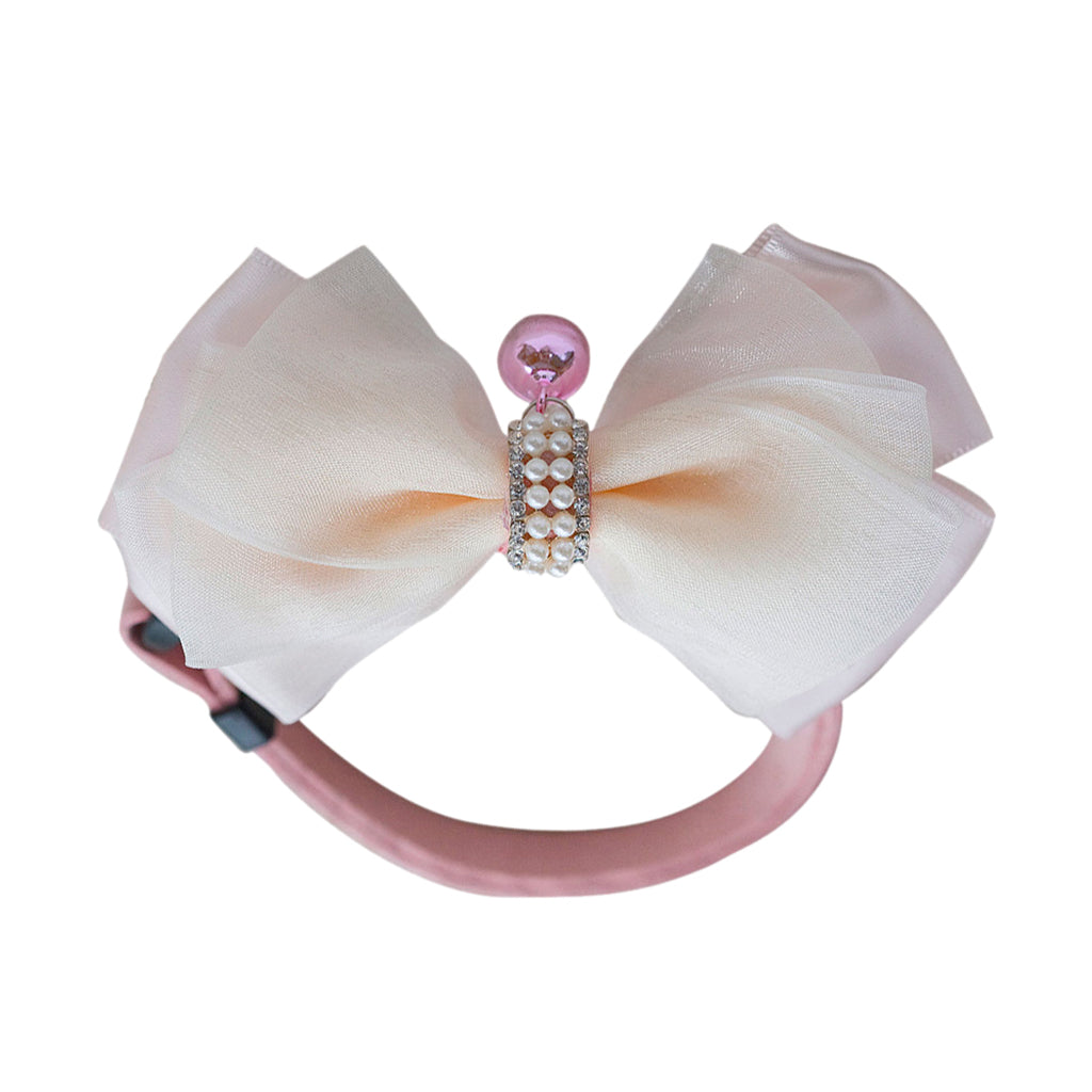 Adjustable Dog Puppy Cat Collar Bowknot Bow Tie Necktie Clothes w/ Bell Pink
