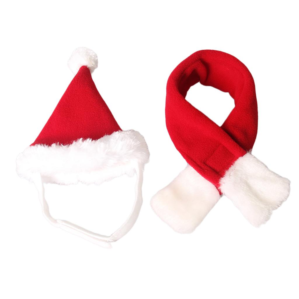 Adjustable Pet Dog Cat Christmas Santa Hat with Scarf Xmas Costume Dress L