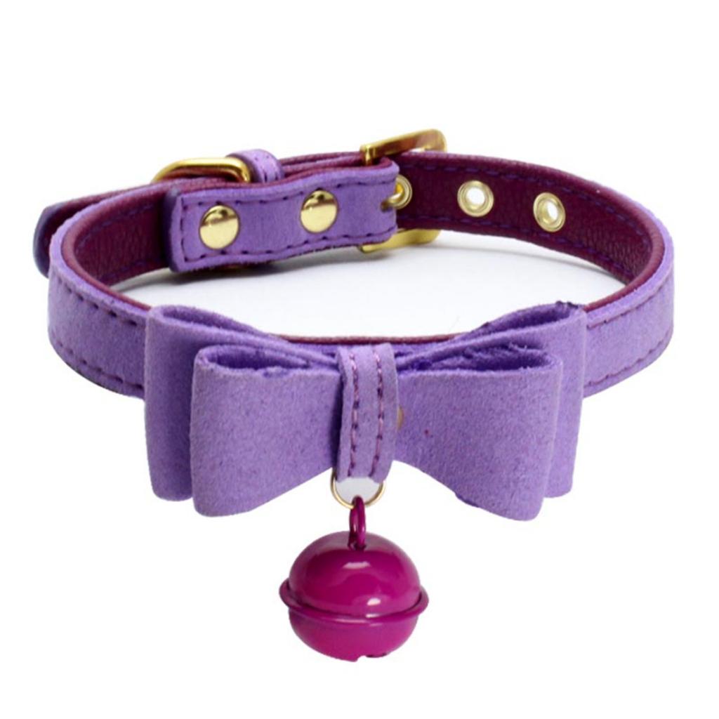Adjustable Pet Dog Cat Puppy Bow Tie Neck Collar with Bell Purple XS