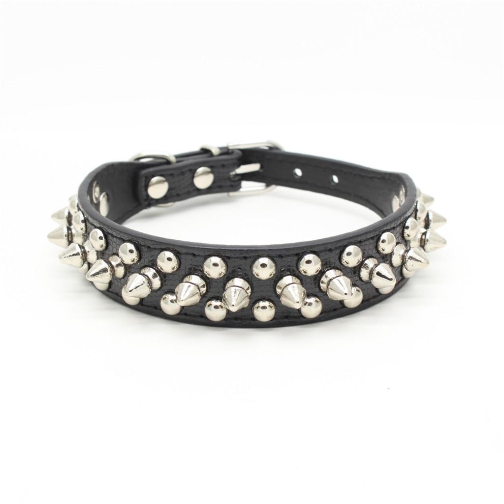 Adjustable PU Leather Rivet Pet Collar Puppy Dog Collar Neck Strap Black_XS
