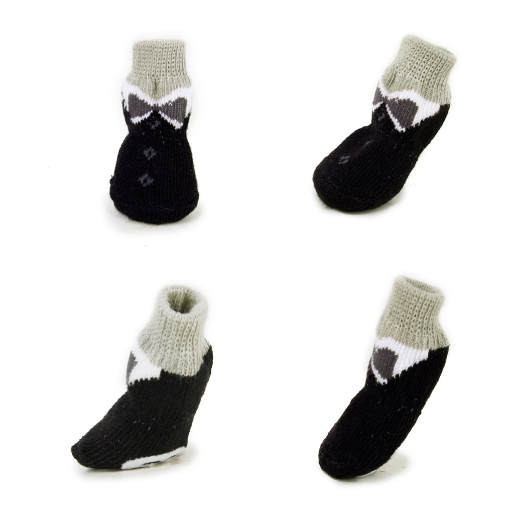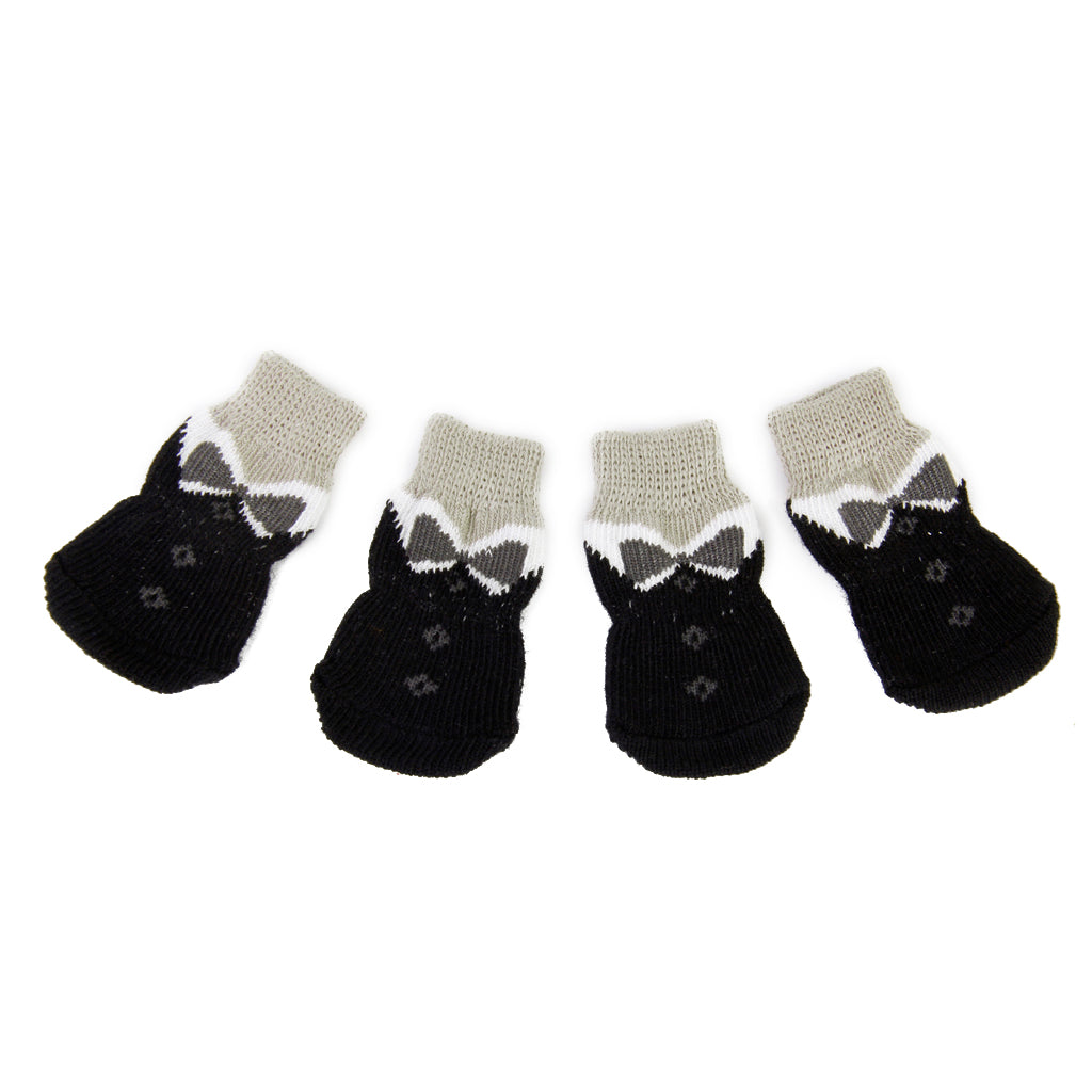 Black Bowknot Pet Dog Puppy Cat Shoes Slippers Non-Slip Socks with Paw Prints Size S