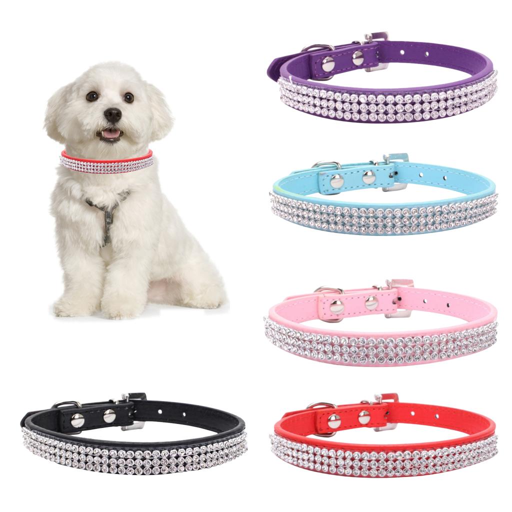 Bling Rhinestone Leather Crystal Diamond Pet Dog Collars Purple S