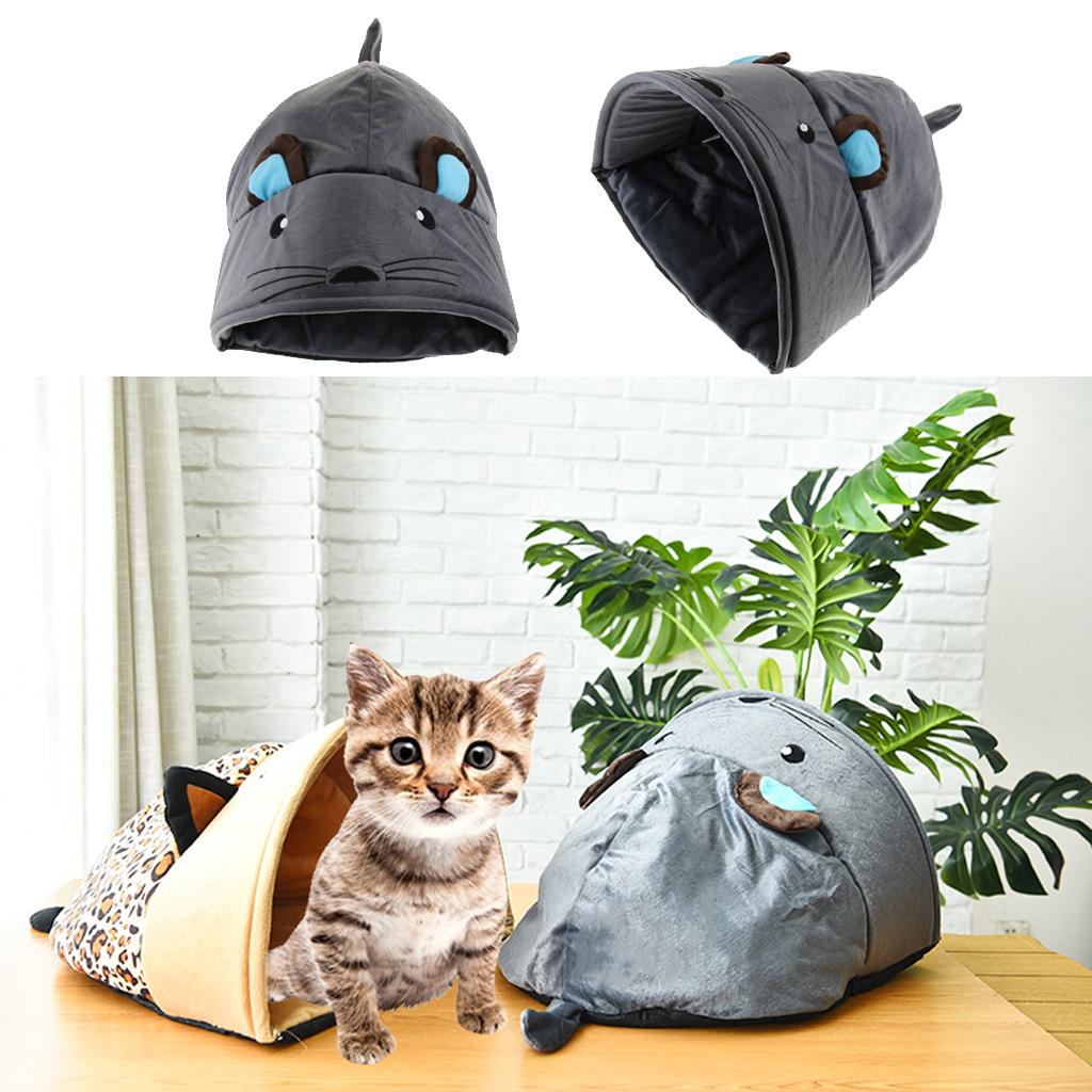 Cartoon Animal Shape Pet Cat Kitten Warm Soft House Nest Bed Gray