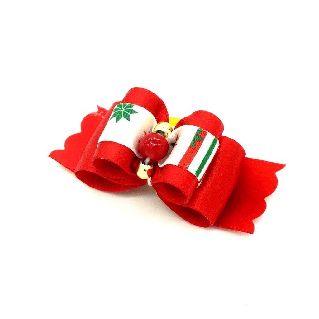 Christmas Pet Dog Cat Hair Rubber Band Rope Ribbon Bow Beads Hair Grooming