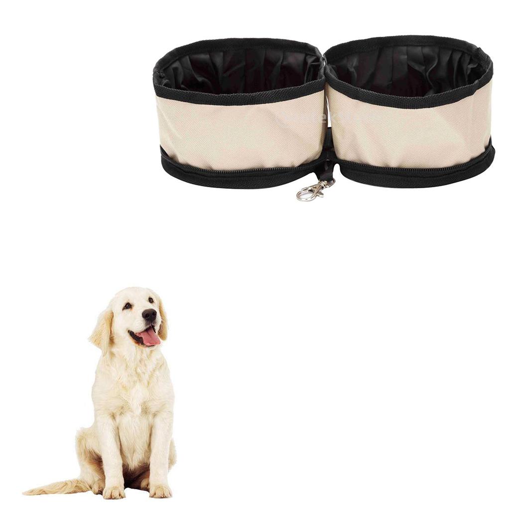 Collapsible Pet Dog Food Water Bowl Dish Waterproof for Travel Camping Beige