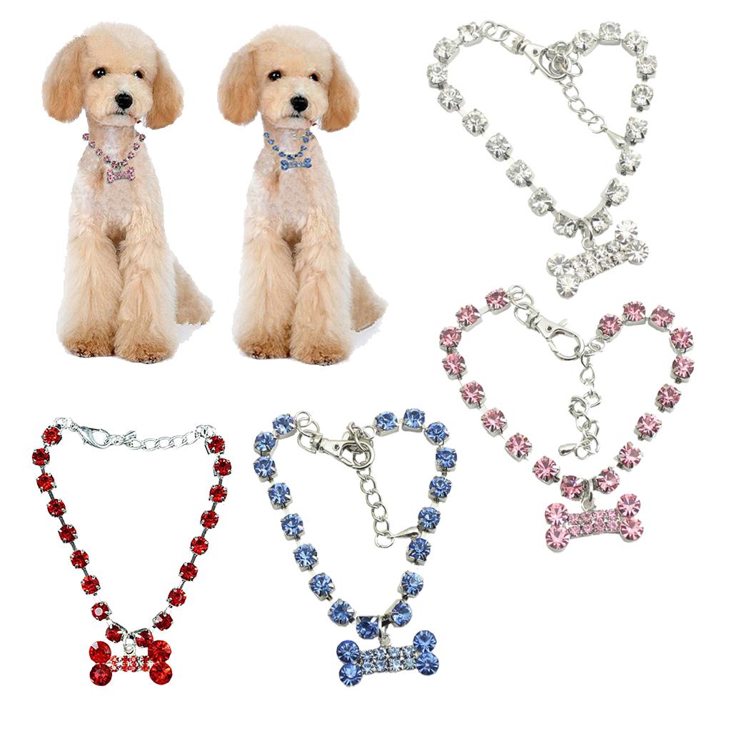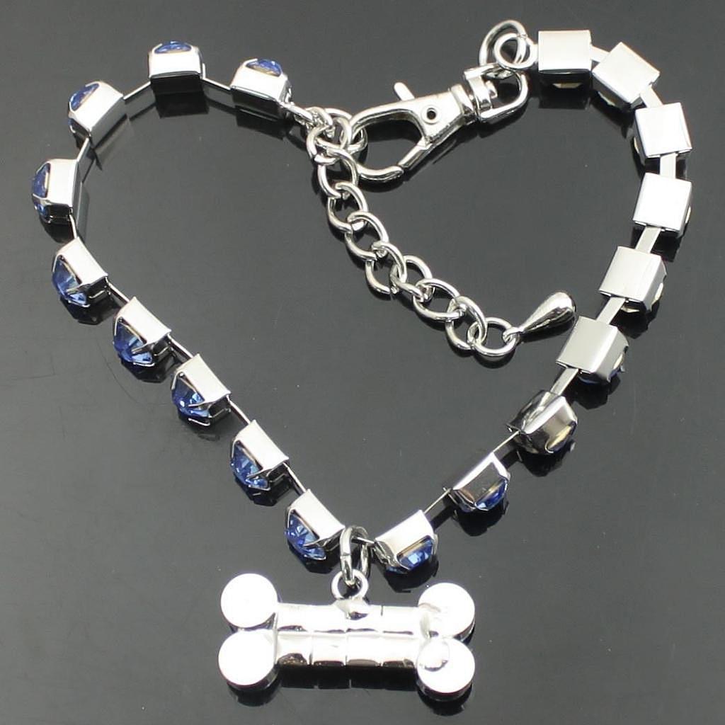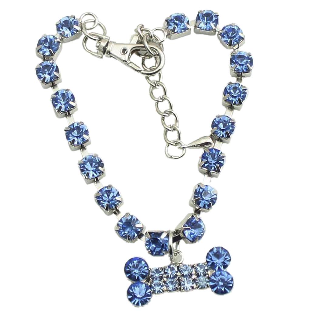 Crystal Diamante Bone Rhinestone Pendant Pet Necklace Dog Jewelry Blue L