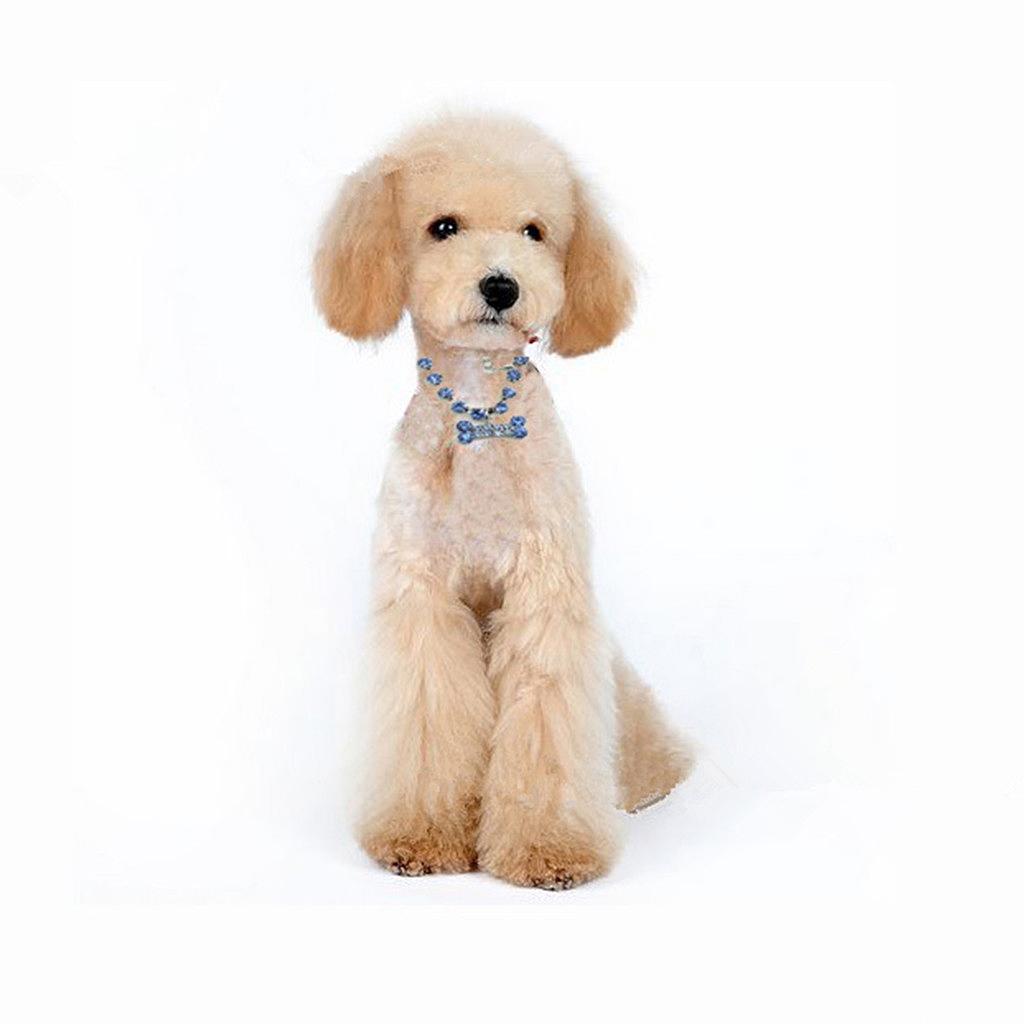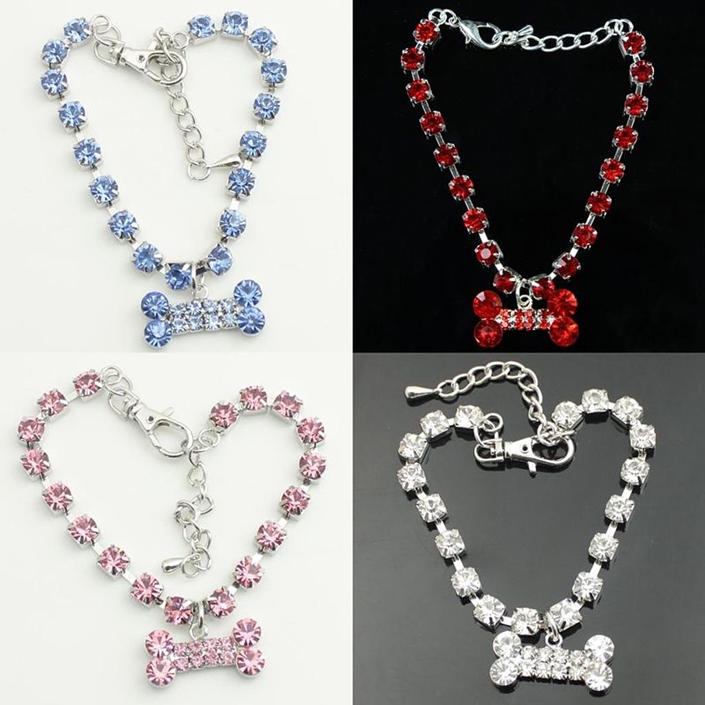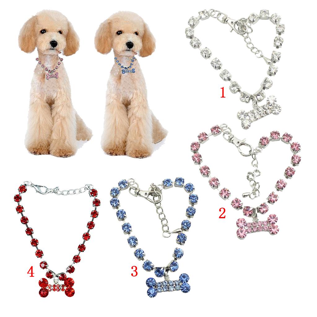 Crystal Diamante Bone Rhinestone Pendant Pet Necklace Dog Jewelry Blue L