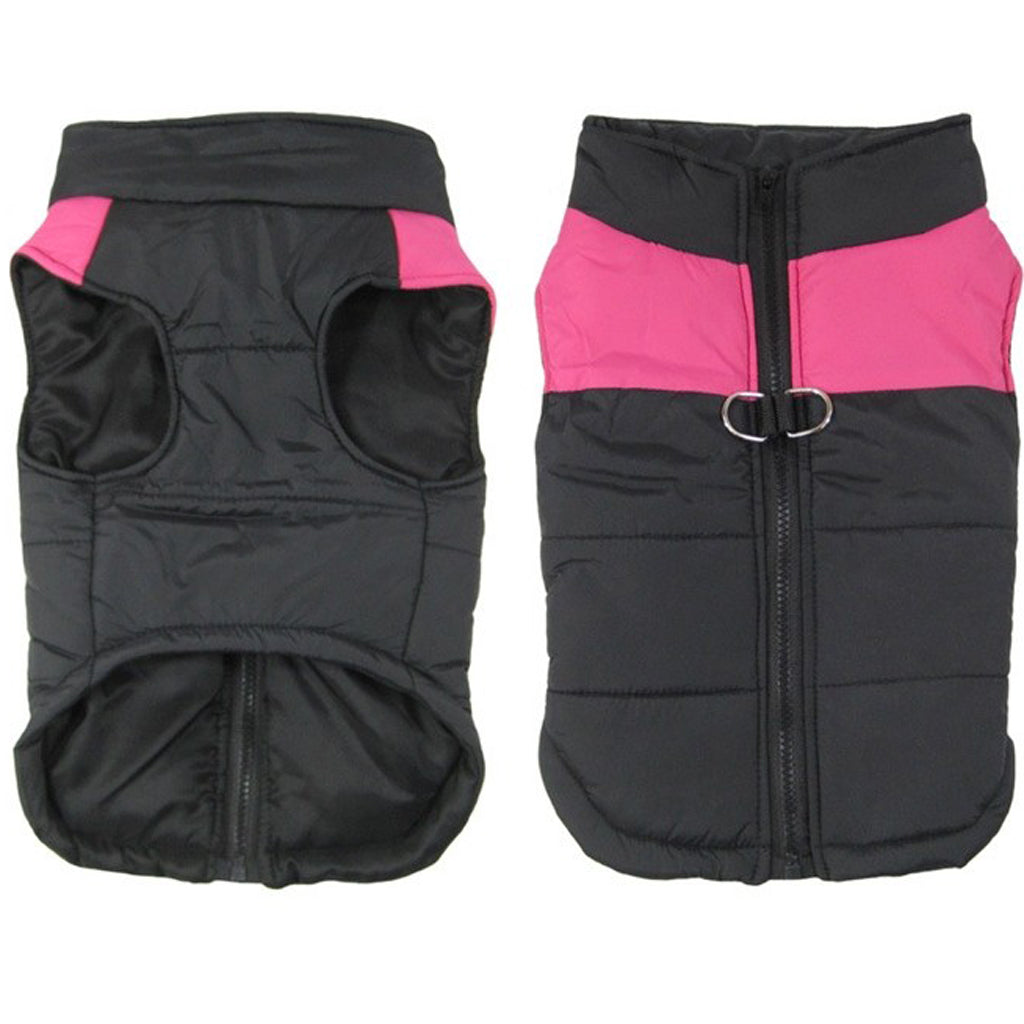 D- ring Design Waterproof Windbreaker Winter Warm Jacket Vest For Small Dog Black with Rose Red S