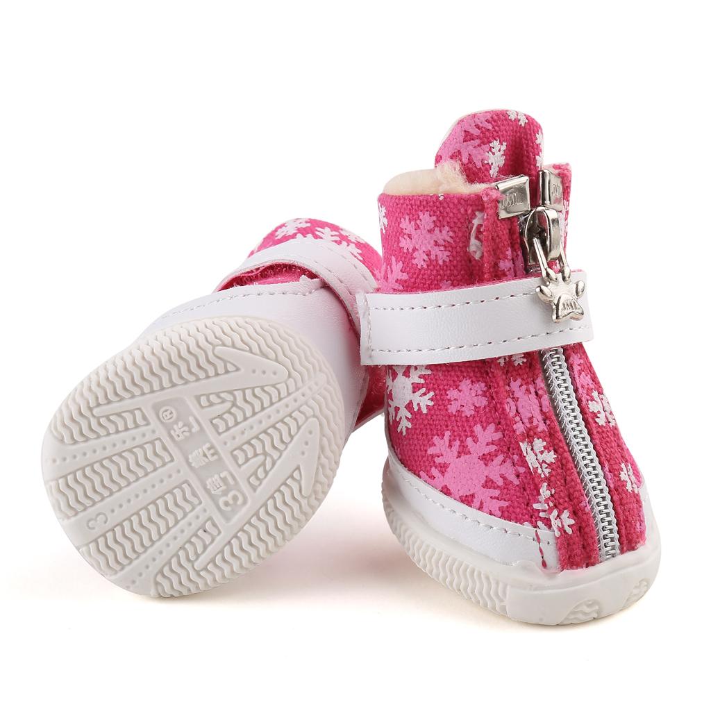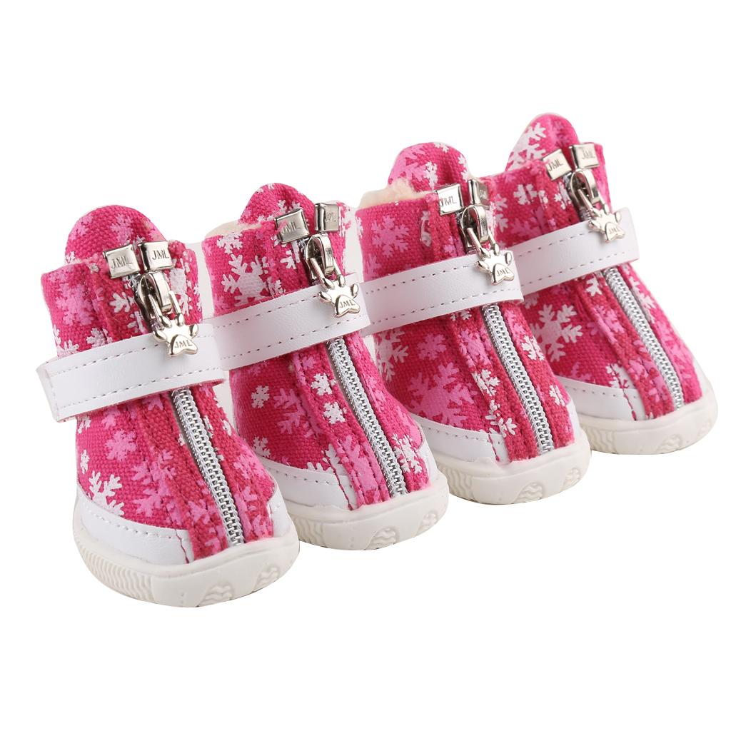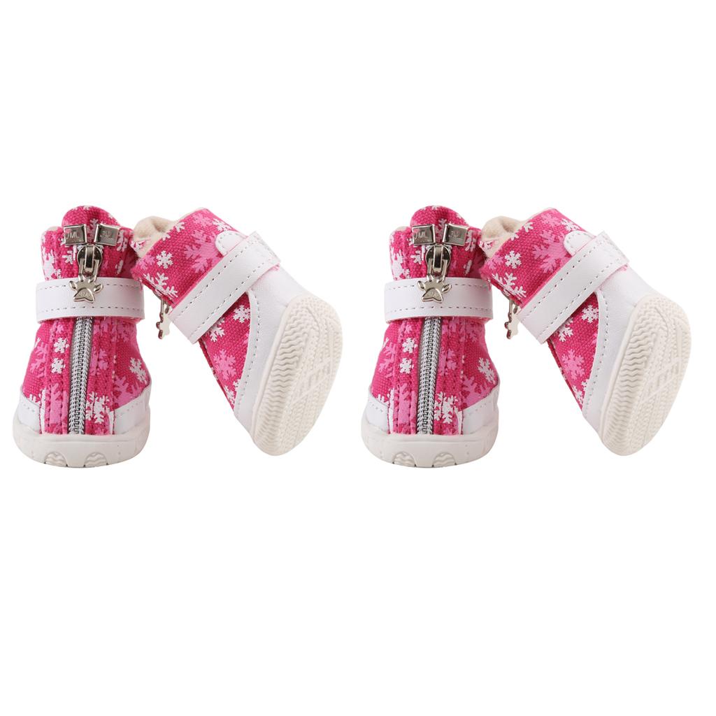 Dog Boots Waterproof Anti-Slip Pet Puppy Coitton Shoes Booties Rose Red #3