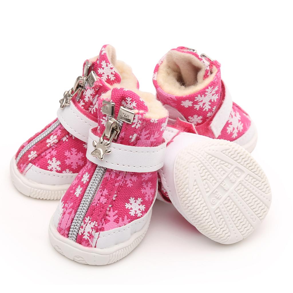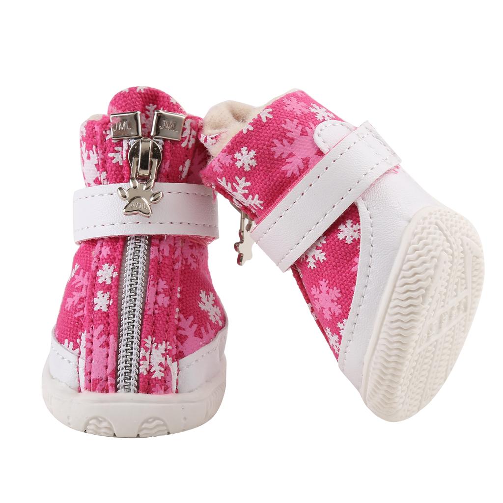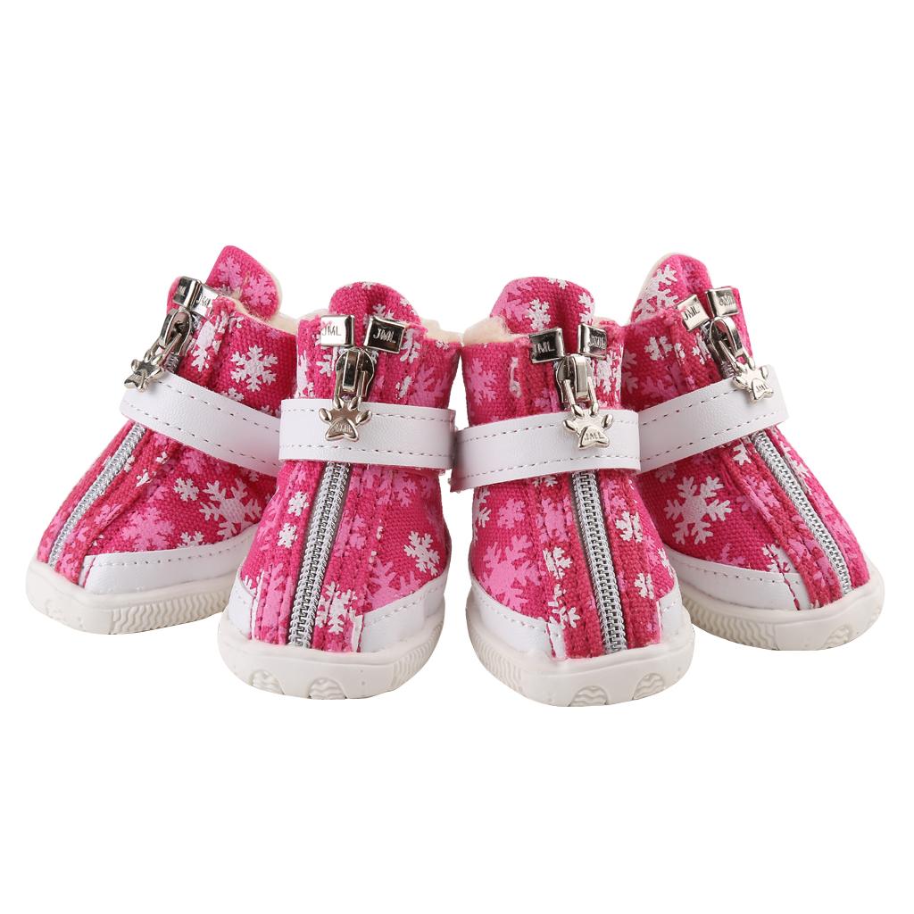 Dog Boots Waterproof Anti-Slip Pet Puppy Coitton Shoes Booties Rose Red #3