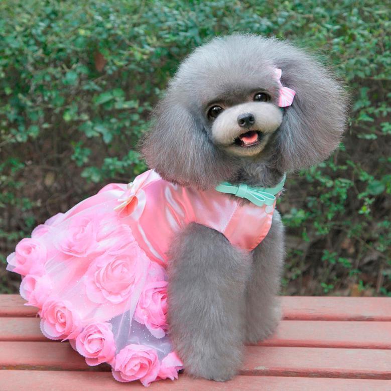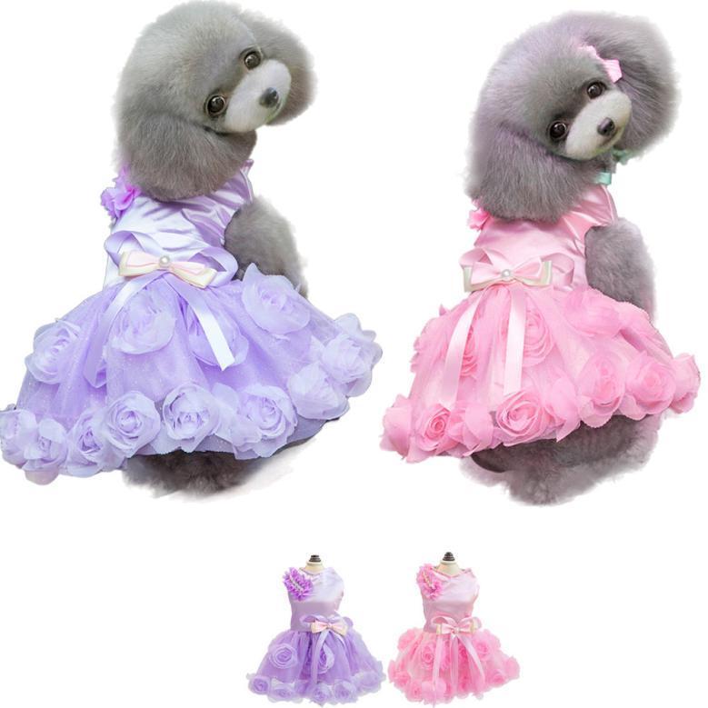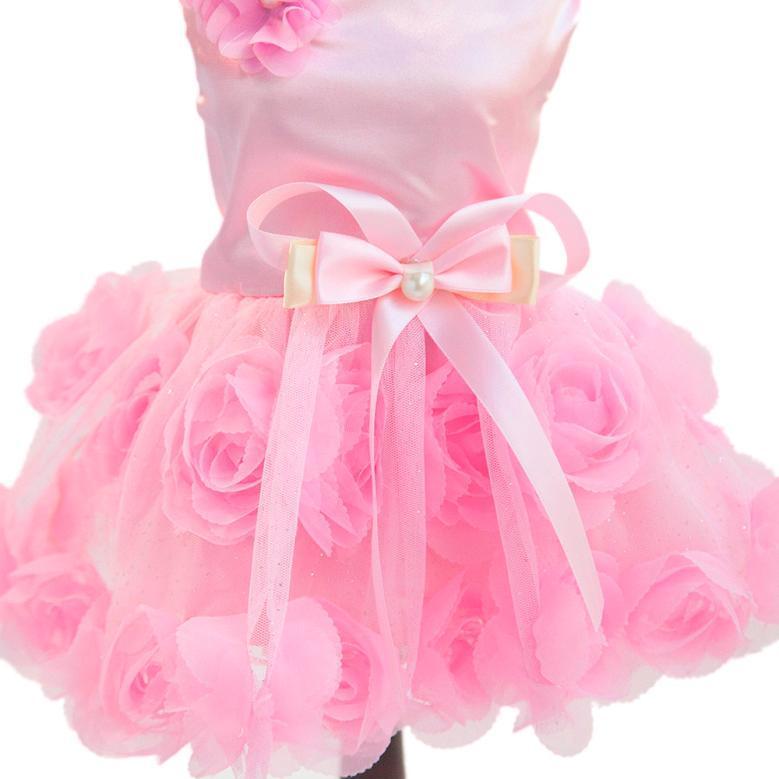 Dog Pet Puppy Princess Dress Tutu Skirt Layered Roses Decor Clothes Pink XL