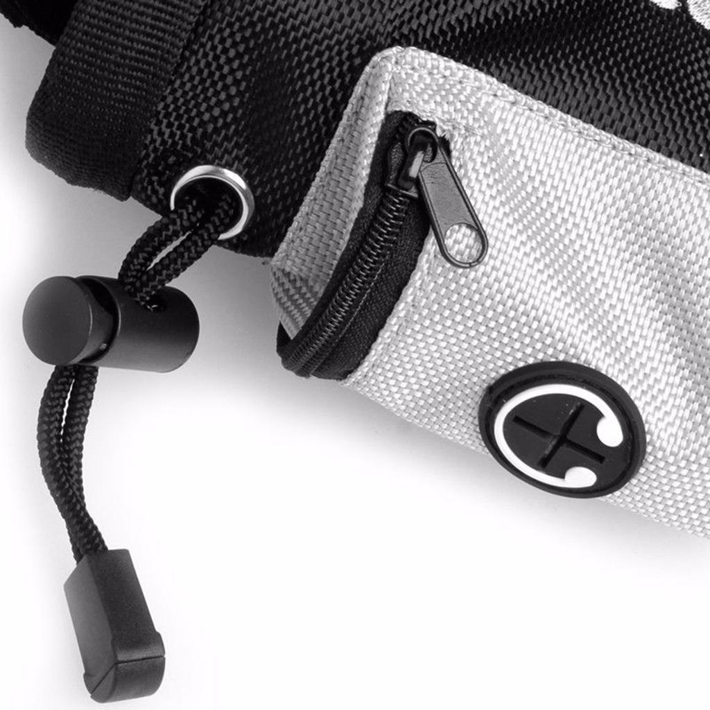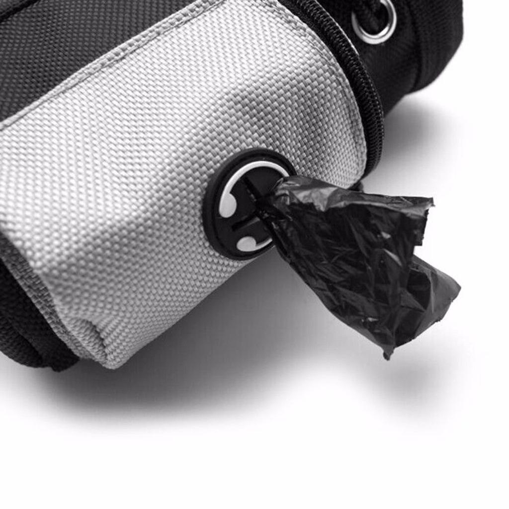 Design with pocket in each side, one with zip can be usd to hold cash, keys and cellphone, the other one can be used to hold poop bags.