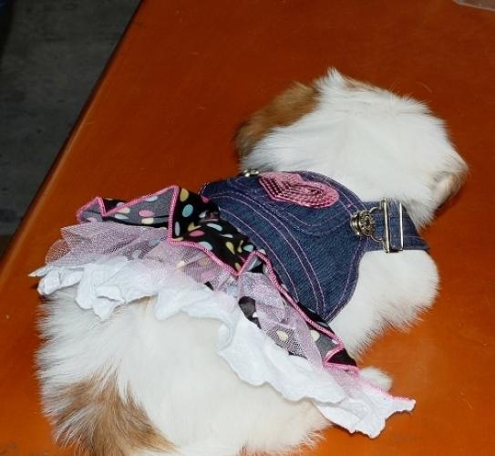 It has real pink sequins sewn in the form of a heart on the real pocket on the back of the doggy.