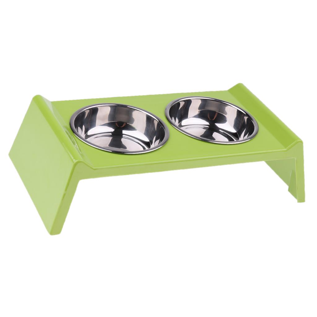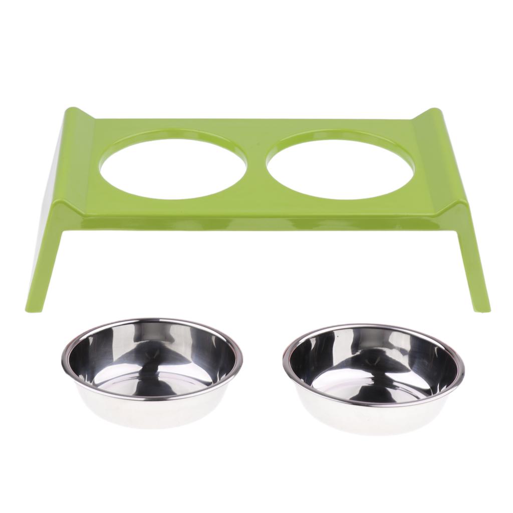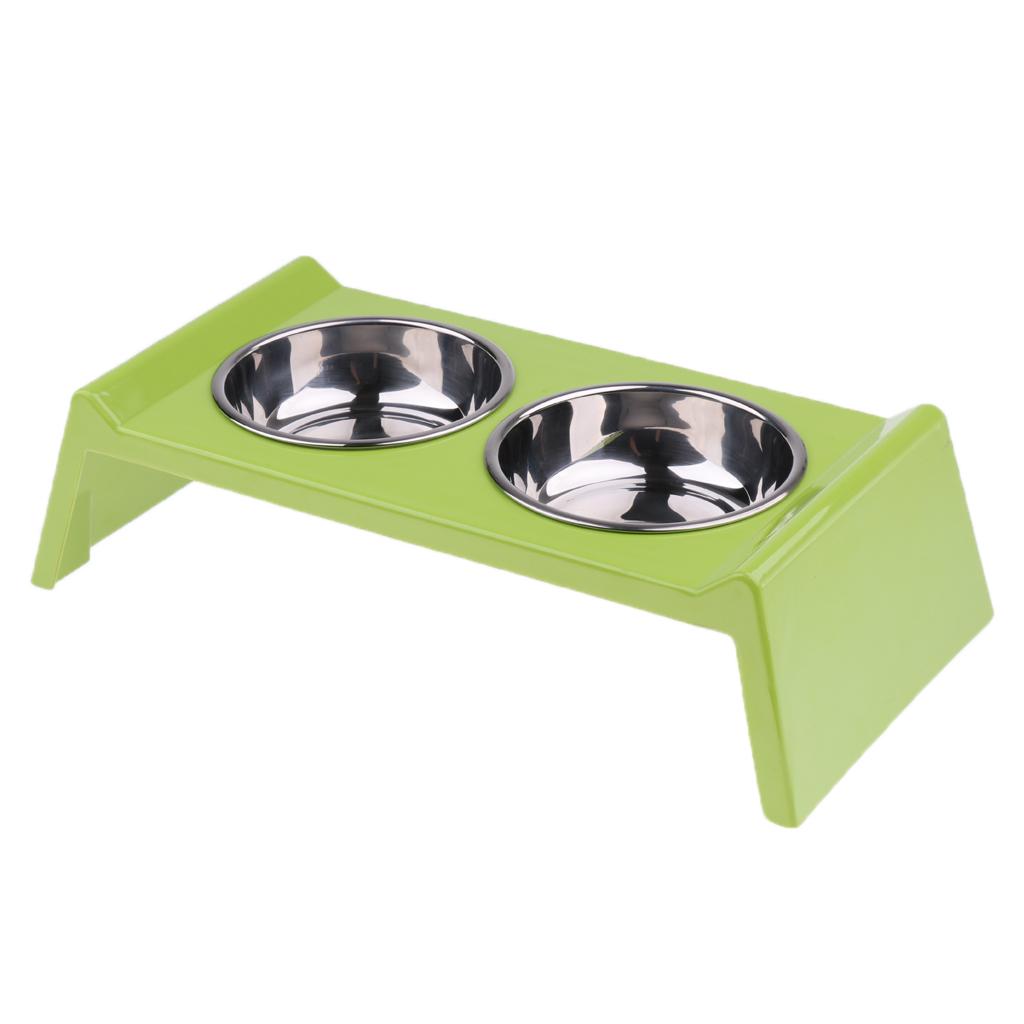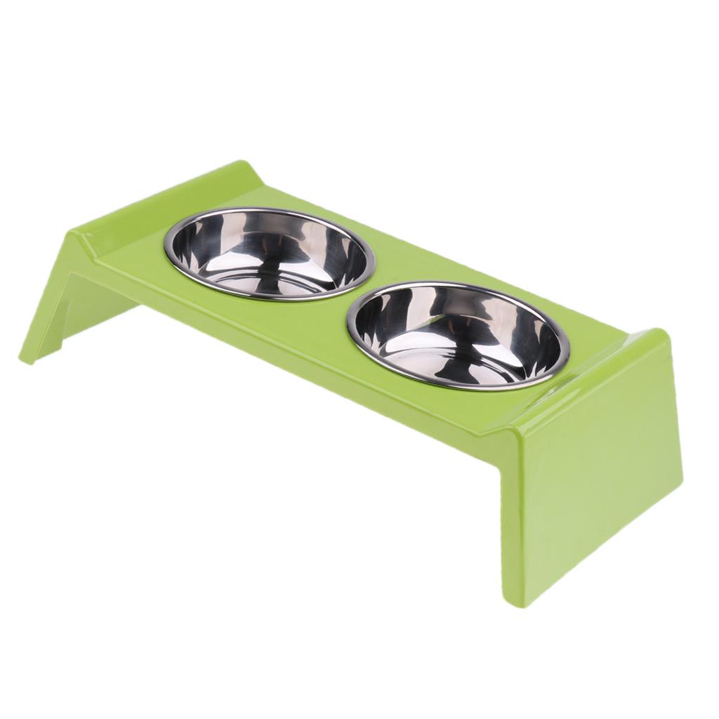 Elevated Dog Pet Stainless Steel Double Bowl Dish Feeder Non-slip Green