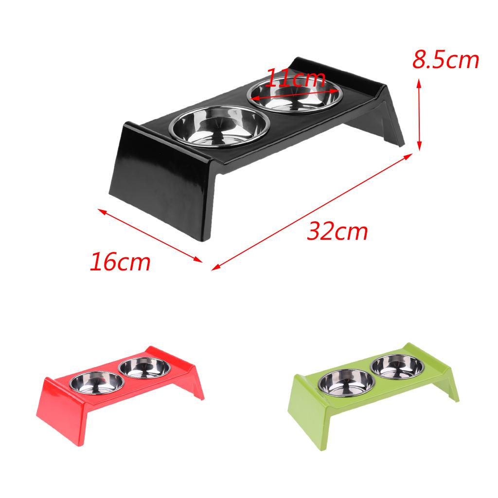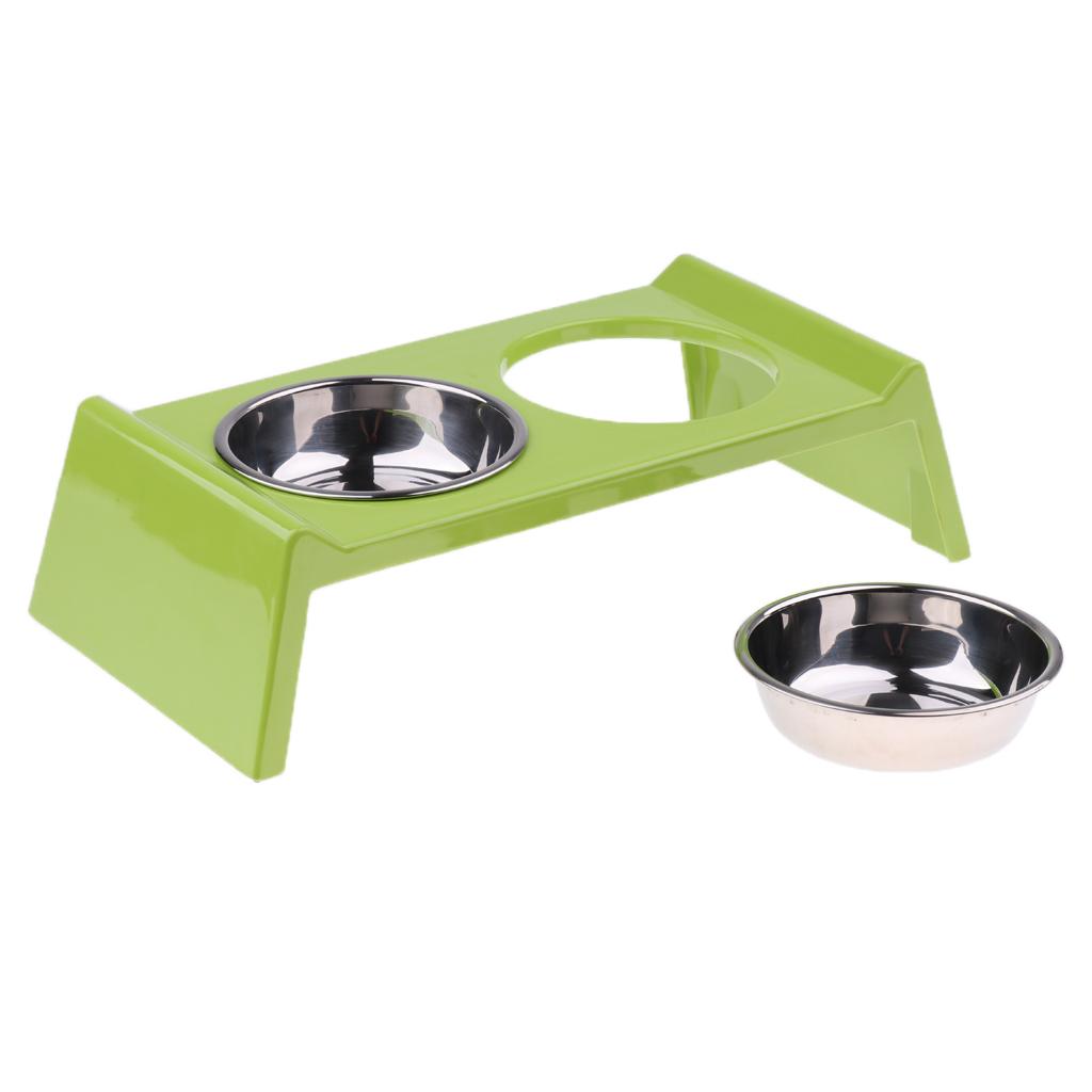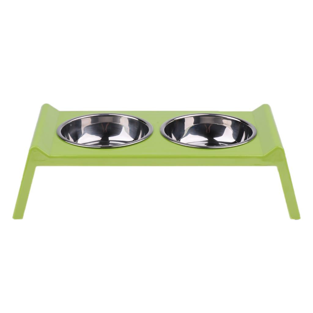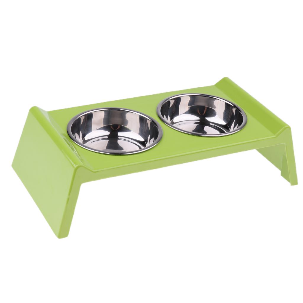 Elevated Dog Pet Stainless Steel Double Bowl Dish Feeder Non-slip Green
