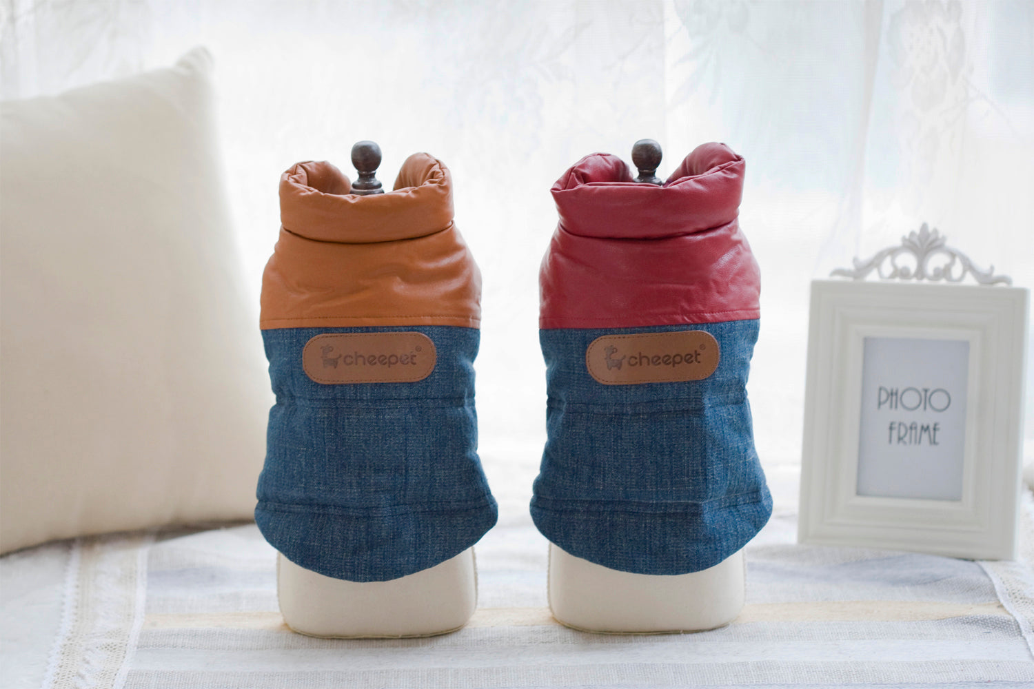 Fashionable Pet Dog Cat Costume Jeans Vest Puppy Cat Clothes Both Sides Wear Soft Comfortable Apparel Outfit Wine Red M