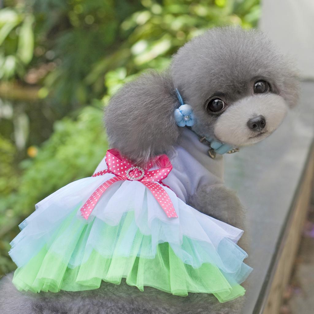 Beautiful dog dress gives pet a bright, breezy, and ultra fashionable look for warm weather outings. This dog dress is perfect for parties or everyday strolls.