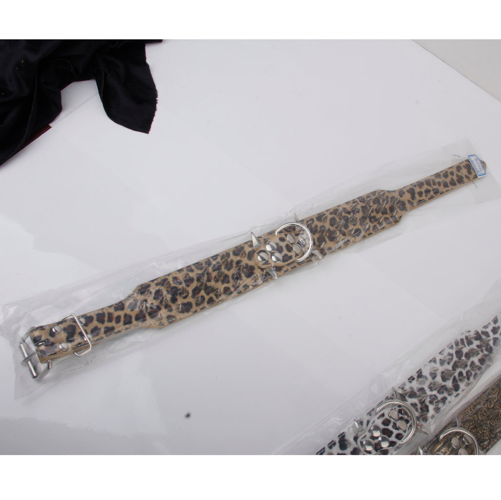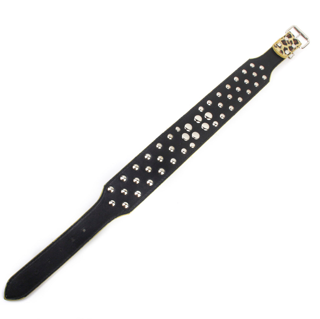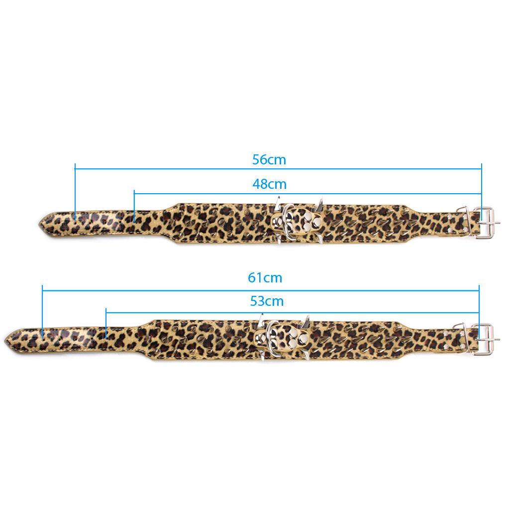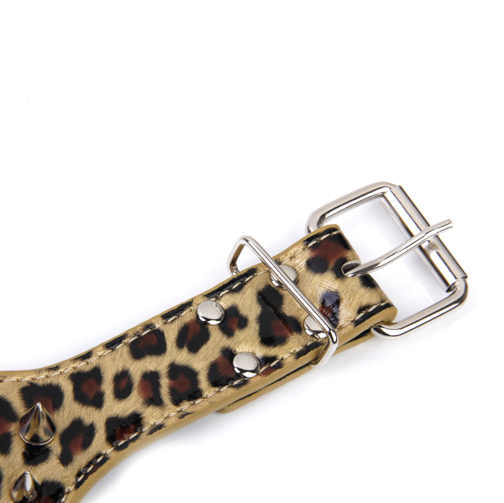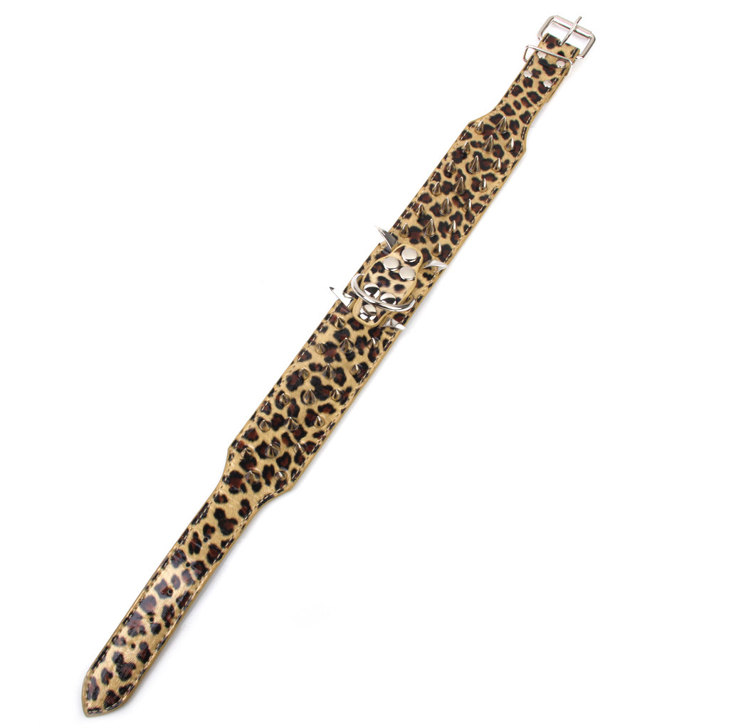 New Spiked Studded PU Leather Durable Pet Dog PitBull Mastiff Collar with D-ring L - Gold Leopard