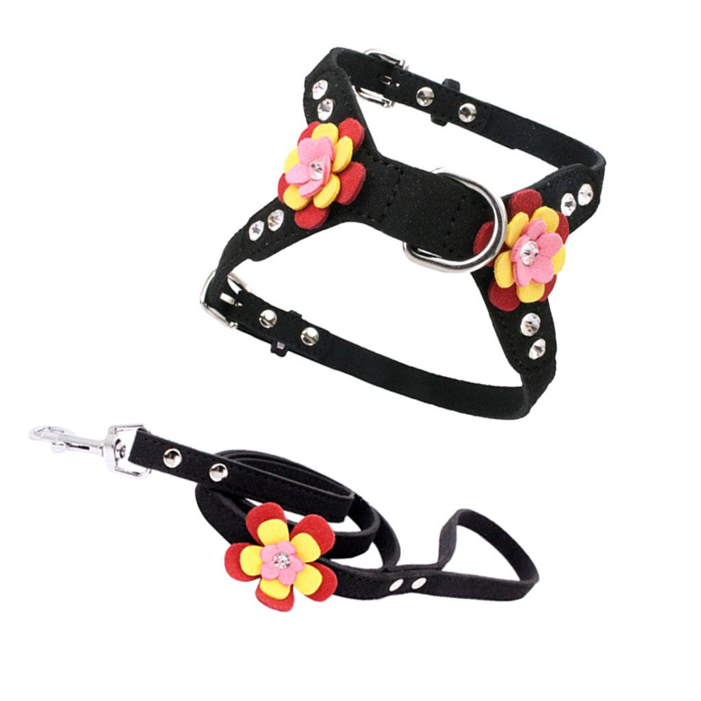 Pet Cat Dog Adjustable Harness Walking Lead Leash Chest Strap Black S