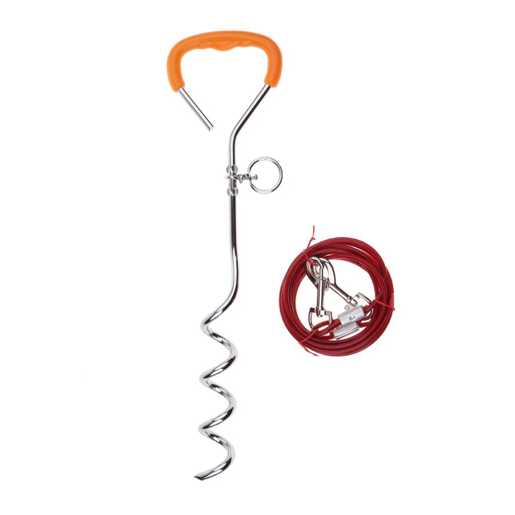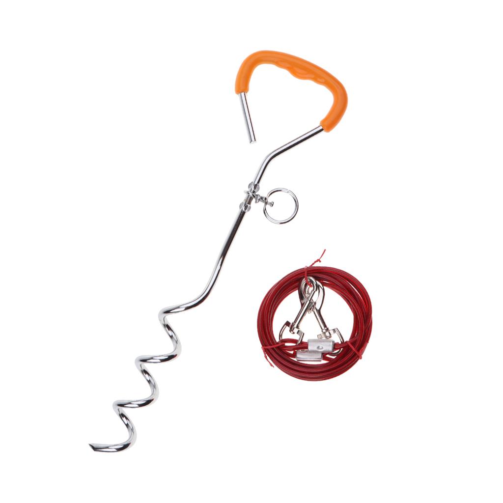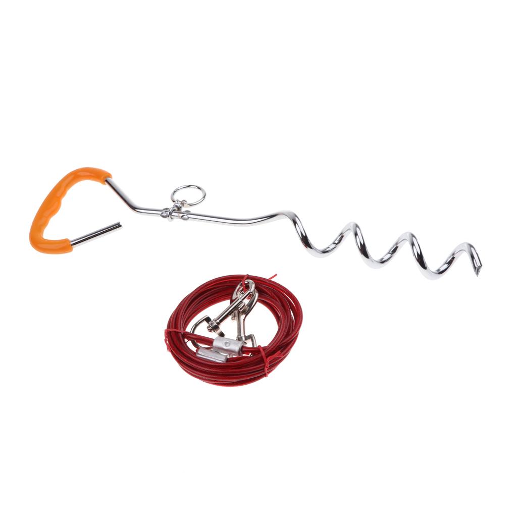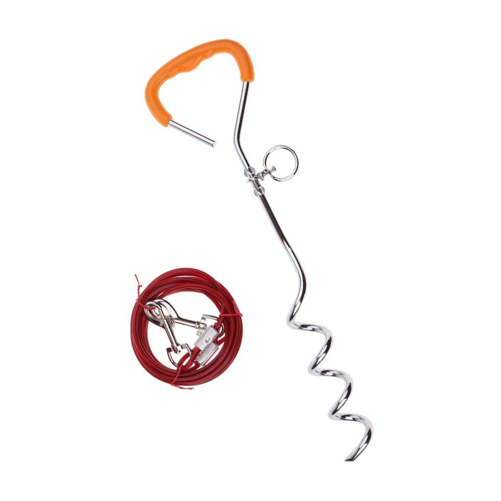 Pet Dog 5mm/6mm Easyturn Stake with 3Meter/5Meter of Tieout Heavy Duty Cable 5mmx3Meter Red
