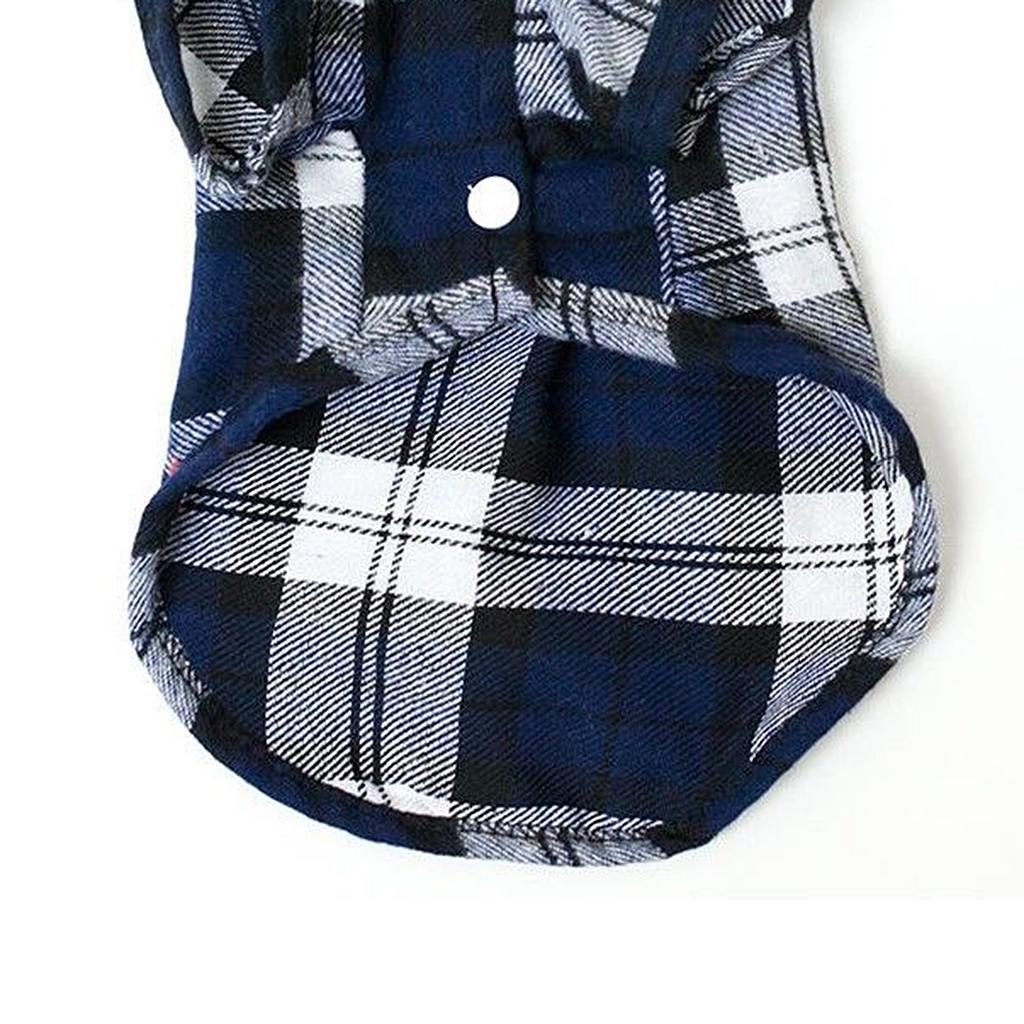 Pet Dog Blue Plaid Pattern T-Shirt Lapel Coat Jacket Clothes Apparel Tops--S