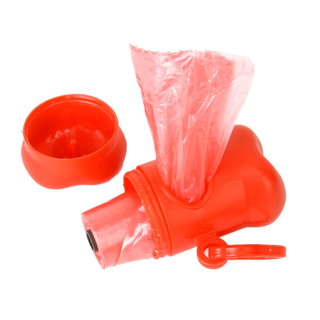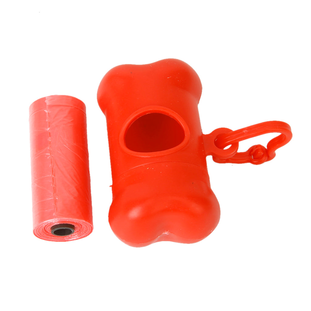 Pet Dog Bone Shape Dispenser Box Garbage Clean Up Waste Bag Carrier Holder Case - Red