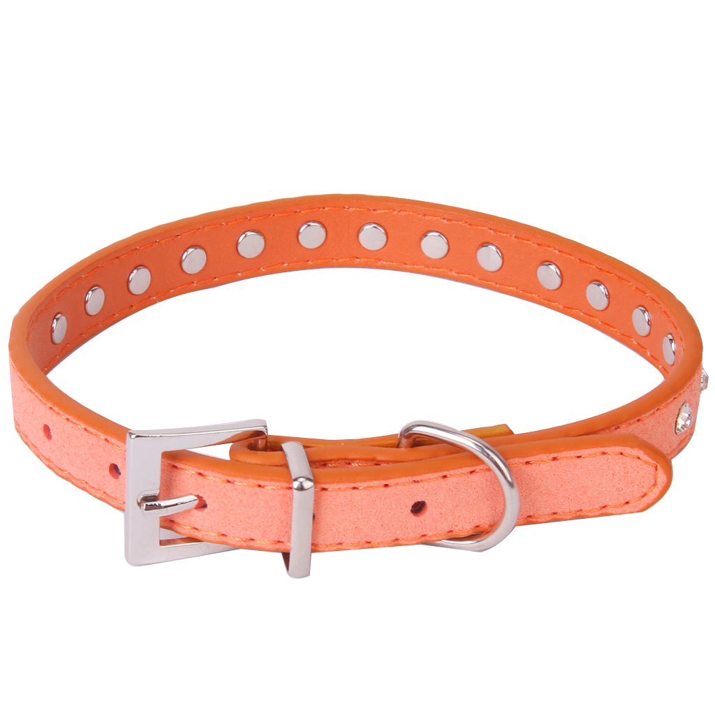 Pet Dog Cat Crystal Rhinestone Cow Suede Neck Collar Size S - Orange