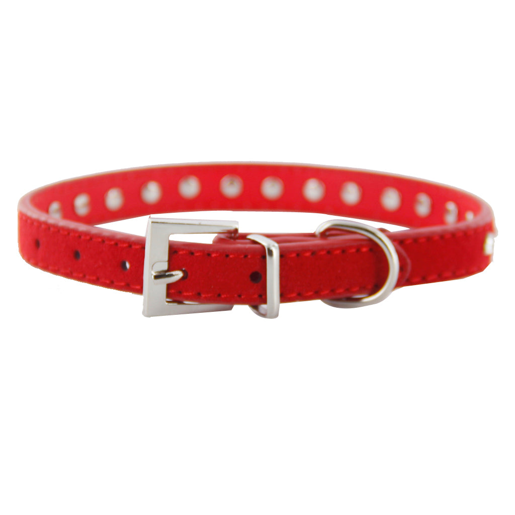 Pet Dog Cat Crystal Rhinestone Cow Suede Neck Collar Size S - Red