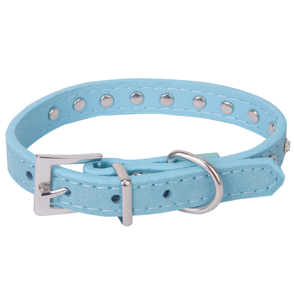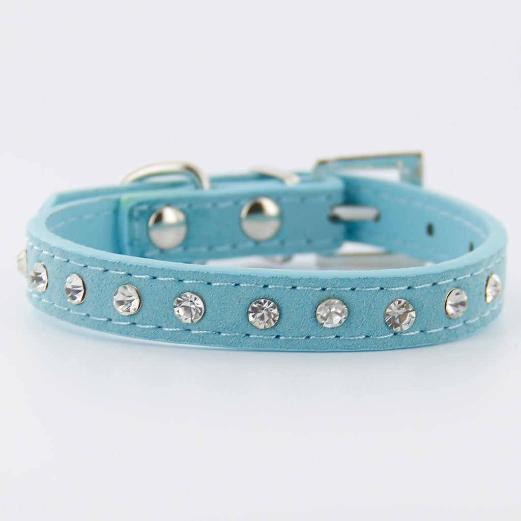 Pet Dog Cat Crystal Rhinestone Cow Suede Neck Collar Size XS - Blue