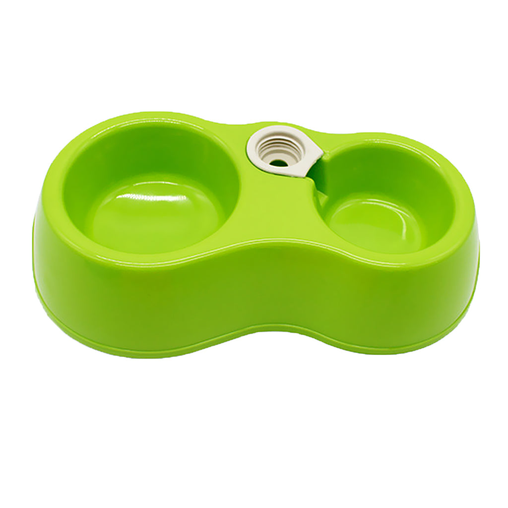 Pet Dog Cat Food Water Fountain Dish Feeder Double Plastic Bowl Green