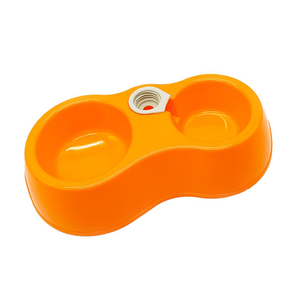 Pet Dog Cat Food Water Fountain Dish Feeder Double Plastic Bowl Orange