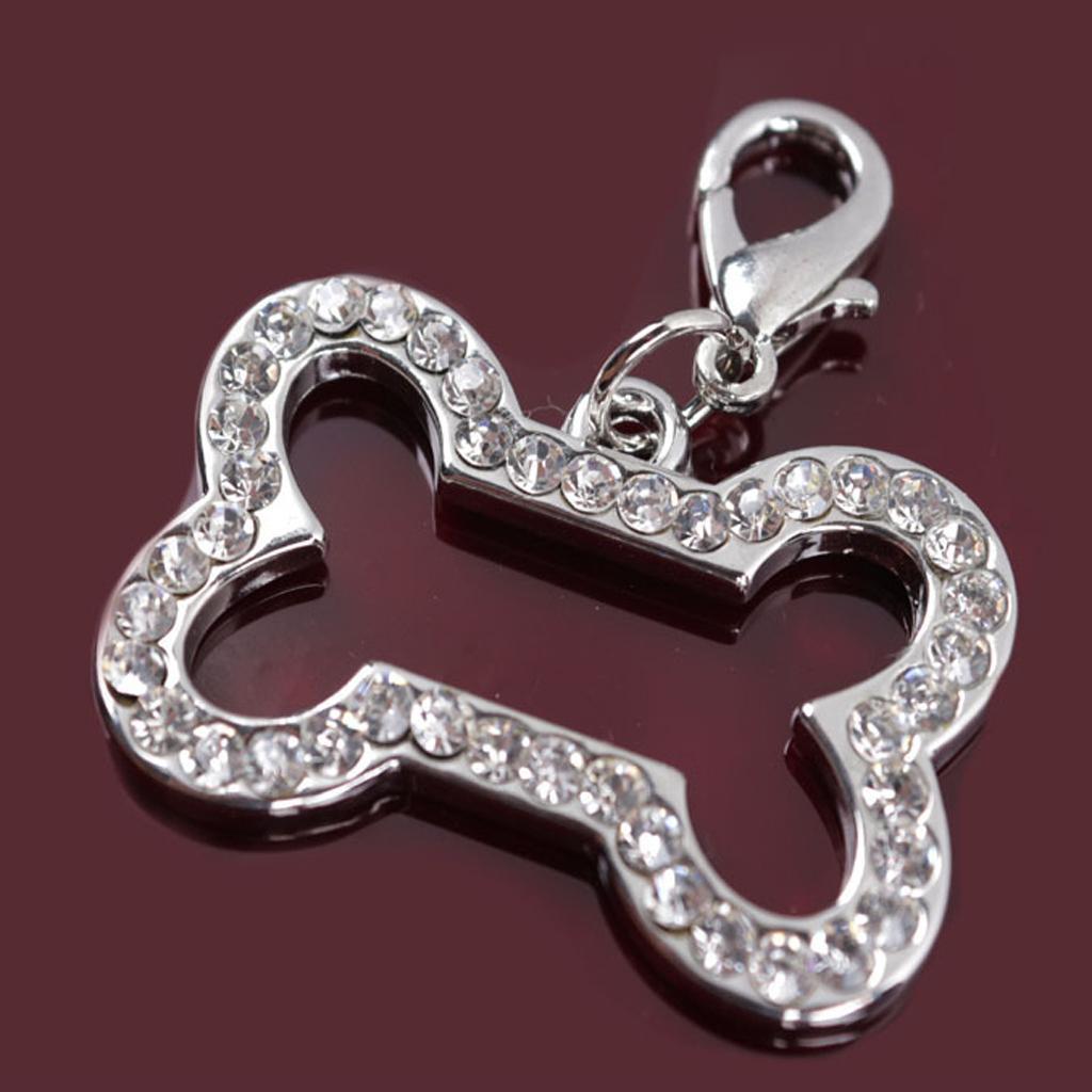 Pet Dog Cat ID Tag Diamond Shine Bone Shape Label Anti-lost
