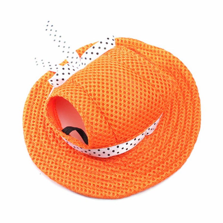Pet Dog Cat Kitten Princess Fashionable Adjustable Chin Strap Sun Protection Hat Cap Sunbonnet Pet Lovers Gift Orange Size S