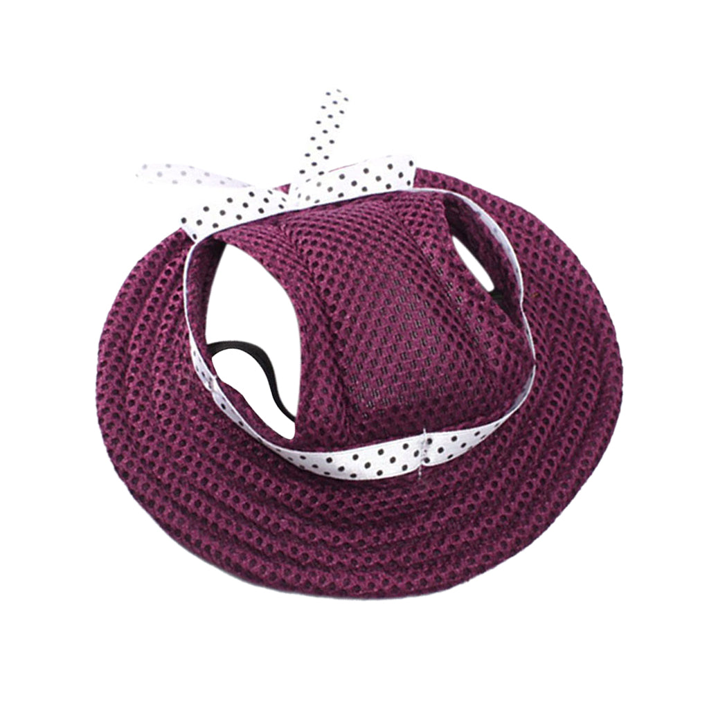Pet Dog Cat Kitten Princess Fashionable Adjustable Chin Strap Sun Protection Hat Cap Sunbonnet Pet Lovers Gift Purple Size M