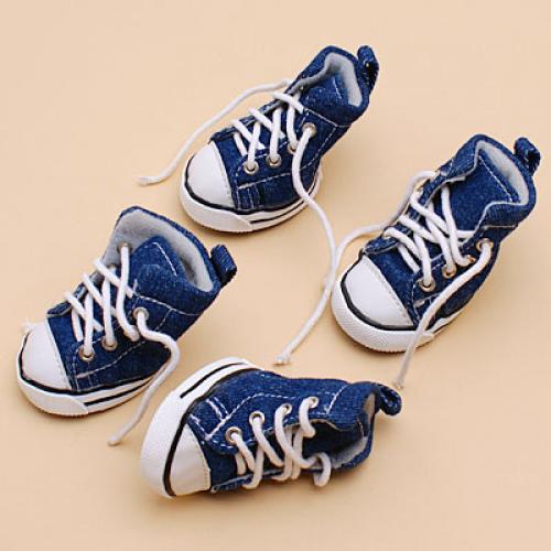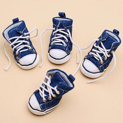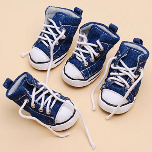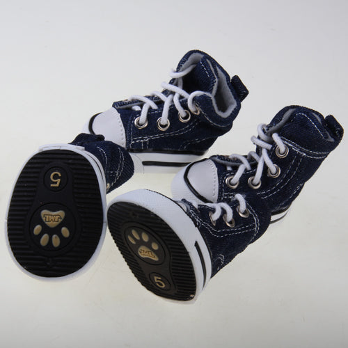 This is a brand new set of dog denim sport shoes. Protecting the tender pads from hot road surfaces or snowy grounds. Keeping the house clean even after walking your pet in rainy weathers and on muddy grounds. Sure to bring you and your pets lots of fun and laughter.