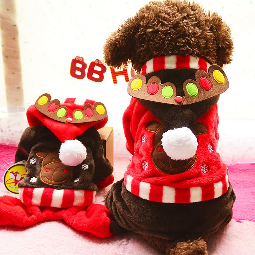 Pet Dog Elk Moose Christmas Clothes Hoodie Kleidung Warm Cat Coat Red XS