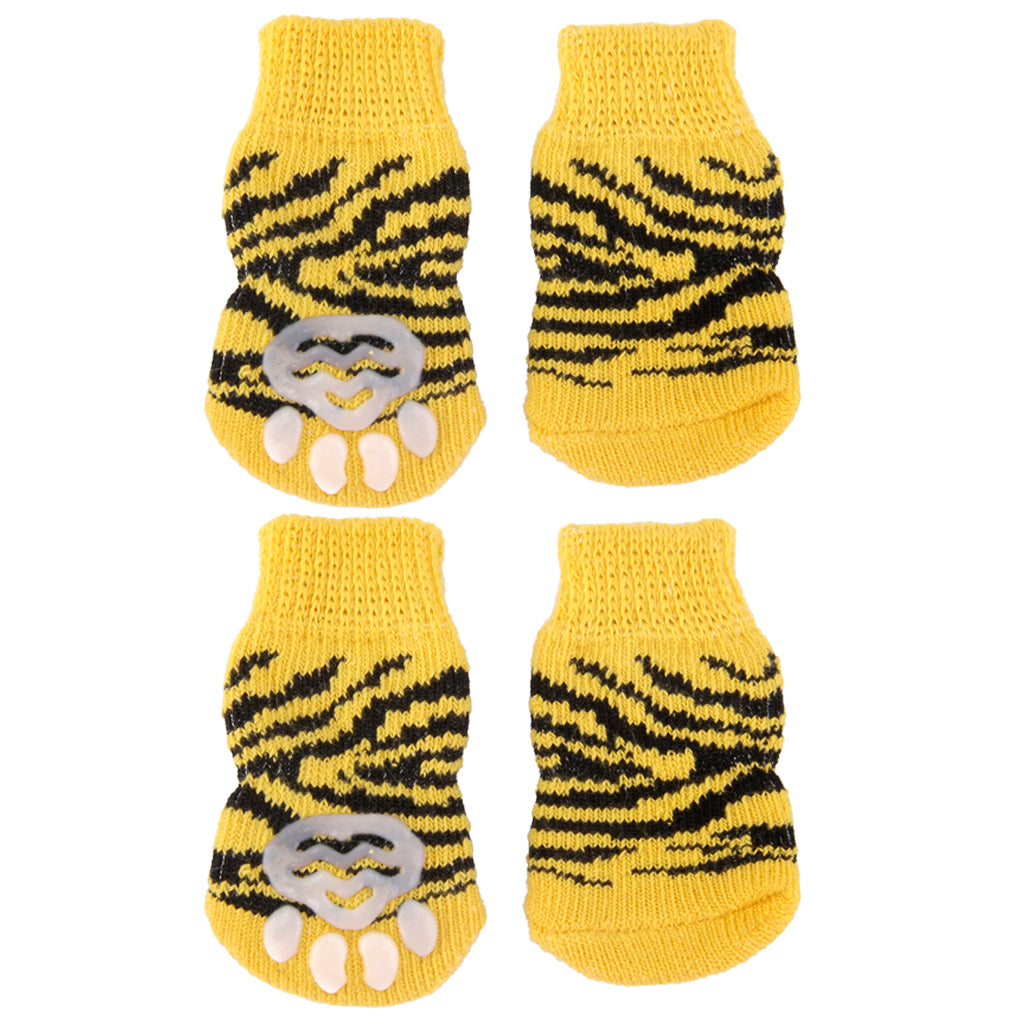 Pet Dog Puppy Cat Non-Slip Non-skid Shoes Slippers Socks Yellow Size S