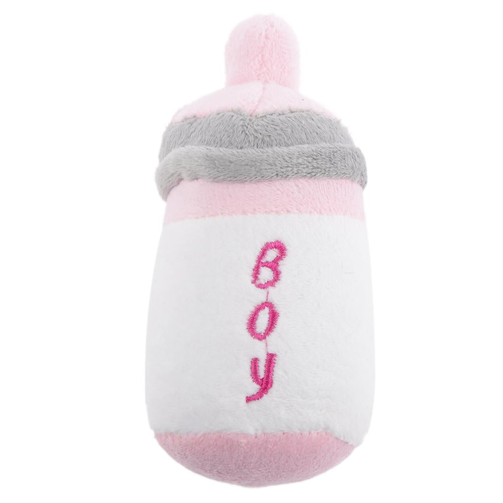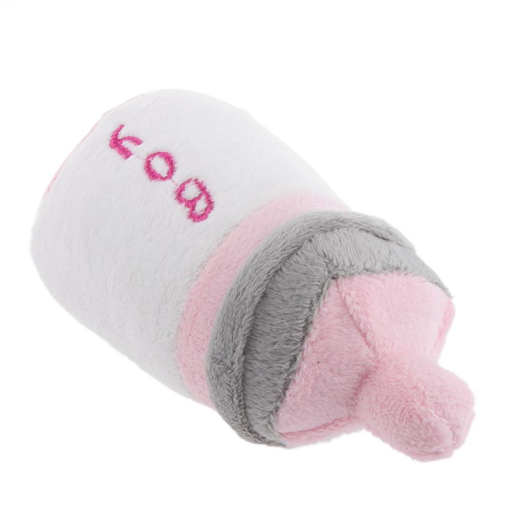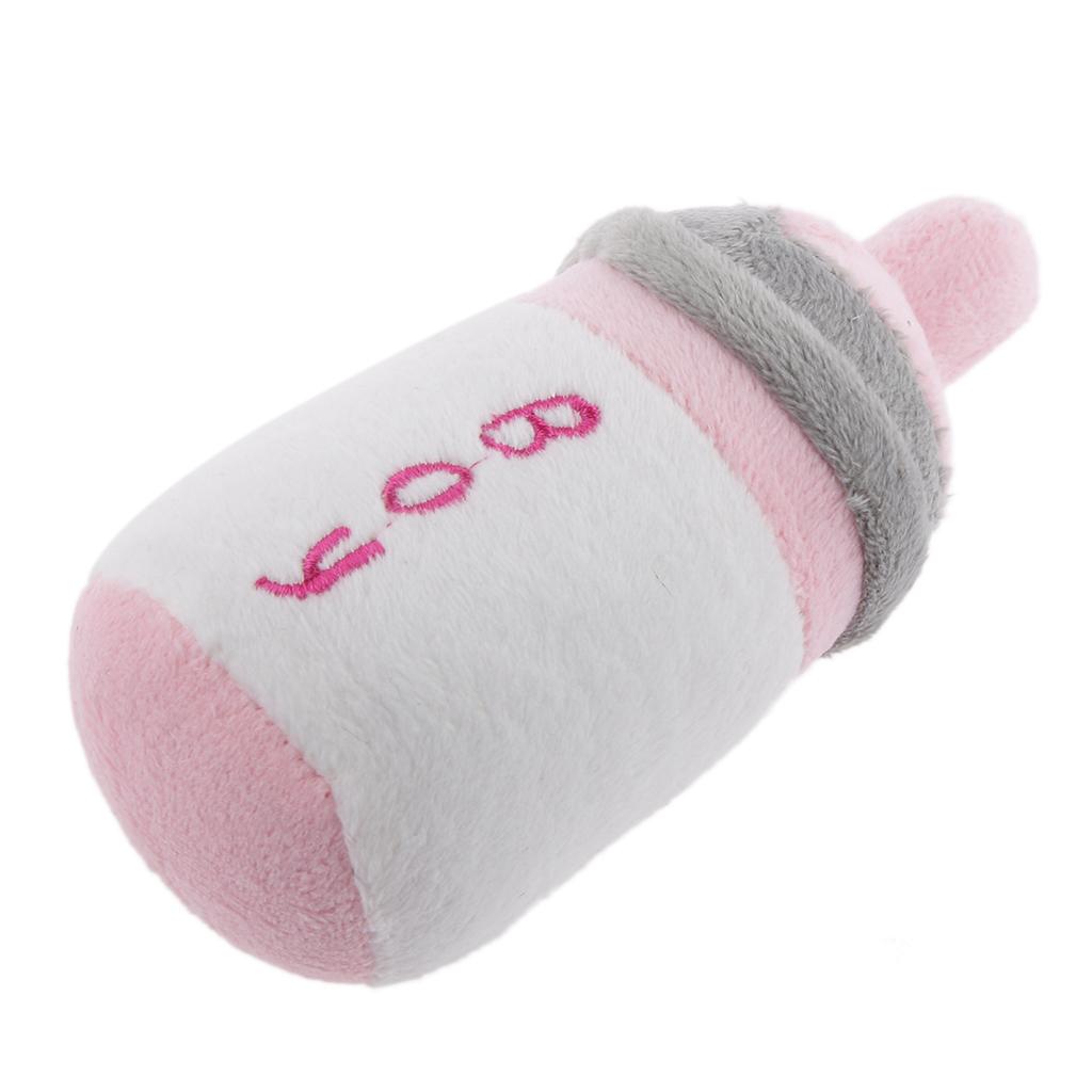 Pet Dog Puppy Cat Play Plush Baby Bottle Nipple Squeaky Sound Chew Toys Pink
