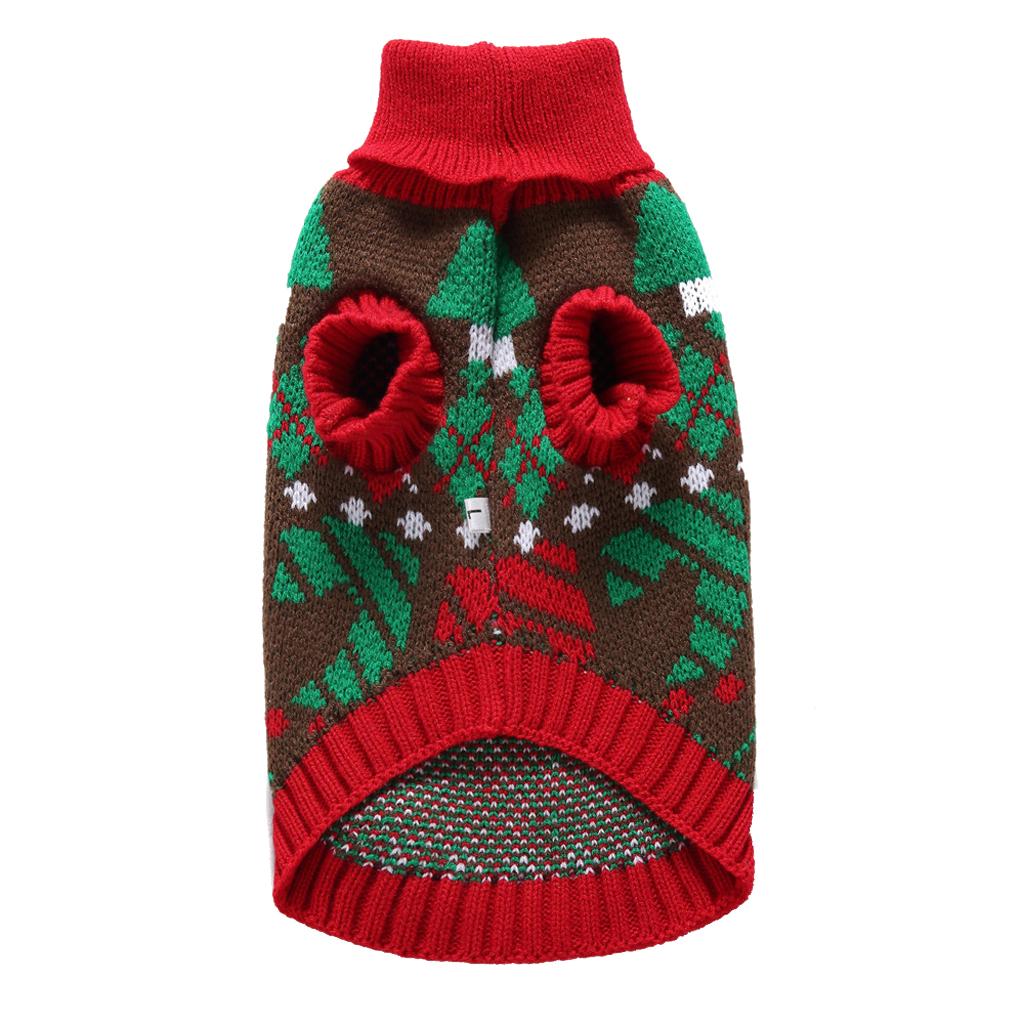 Pet Dog Puppy Christmas Outfit Winter Clothes Dress Knitted Sweater Brown_M
