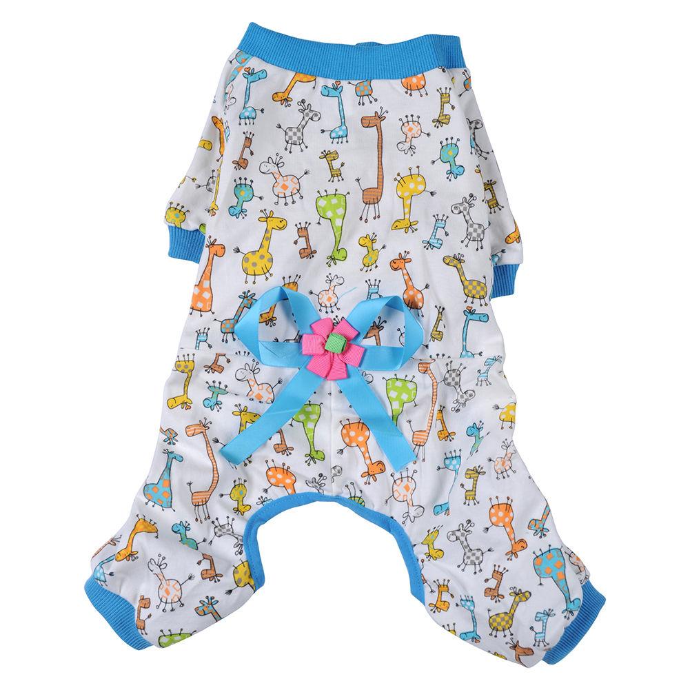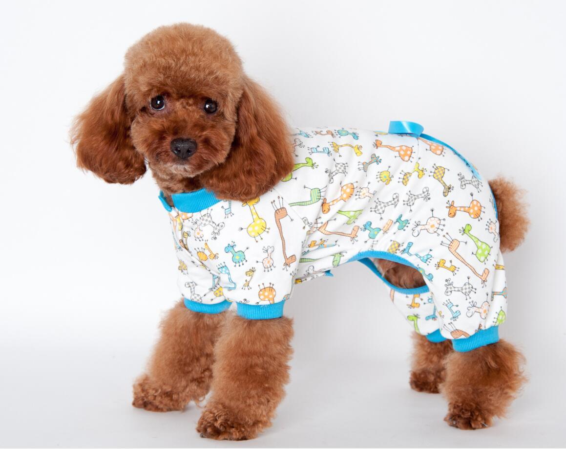 Pet Dog Puppy Cotton Clothes Soft Pajamas Cartoon Jumpsuit Apparel Blue M