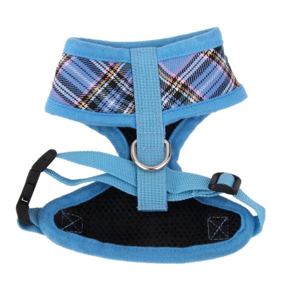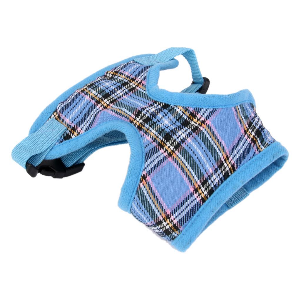 Pet Dog Puppy Plaid Mesh Adjustable Harness Clothes Size L Blue