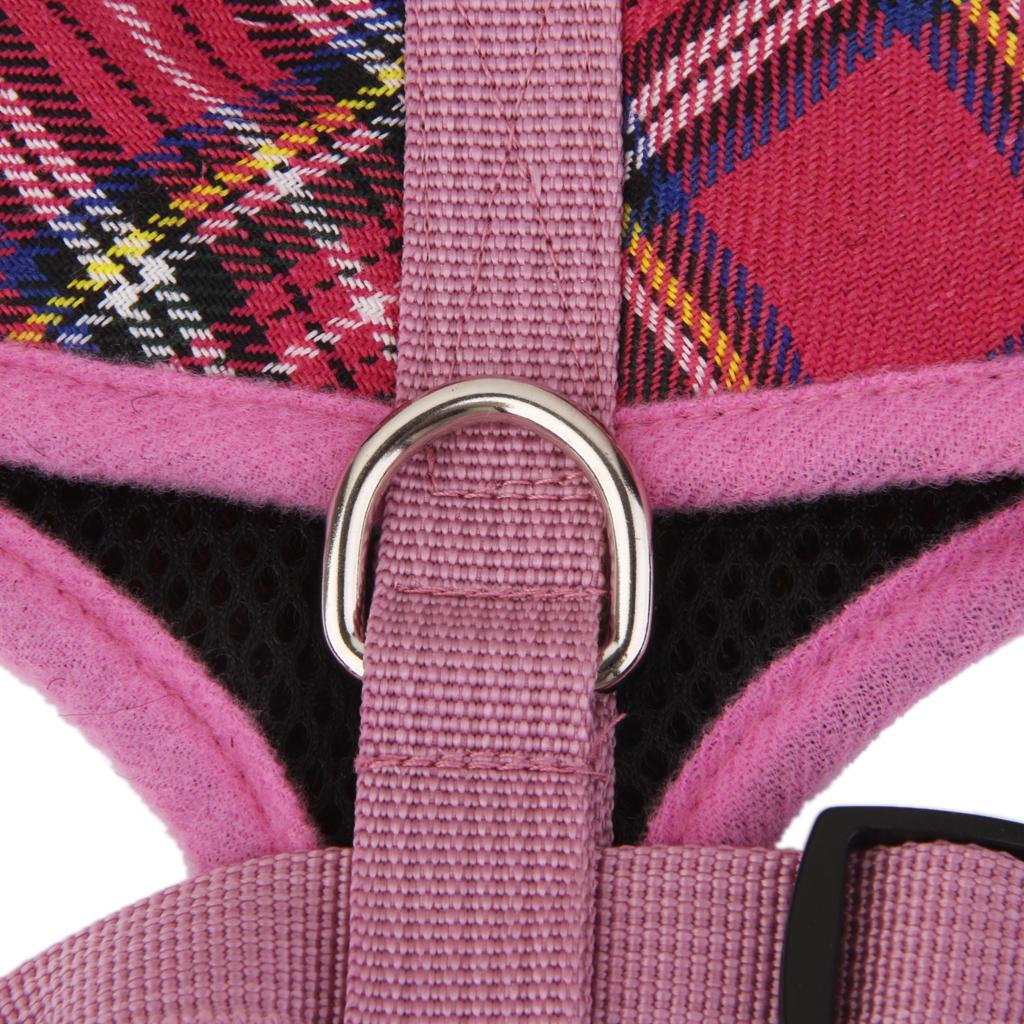Pet Dog Puppy Plaid Mesh Adjustable Harness Clothes Size L Pink