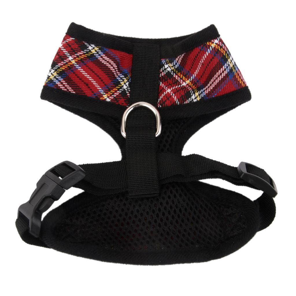 Pet Dog Puppy Plaid Mesh Adjustable Harness Clothes Size S Red