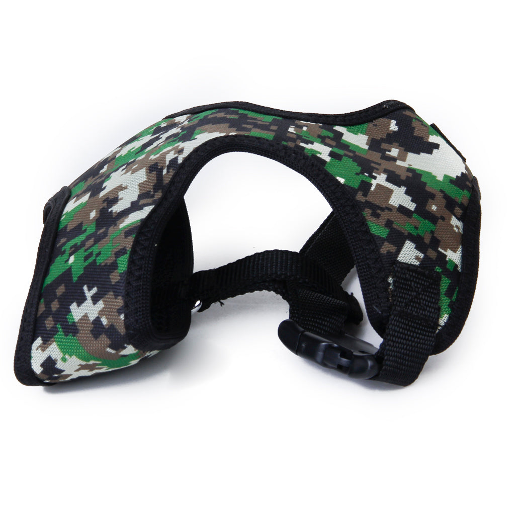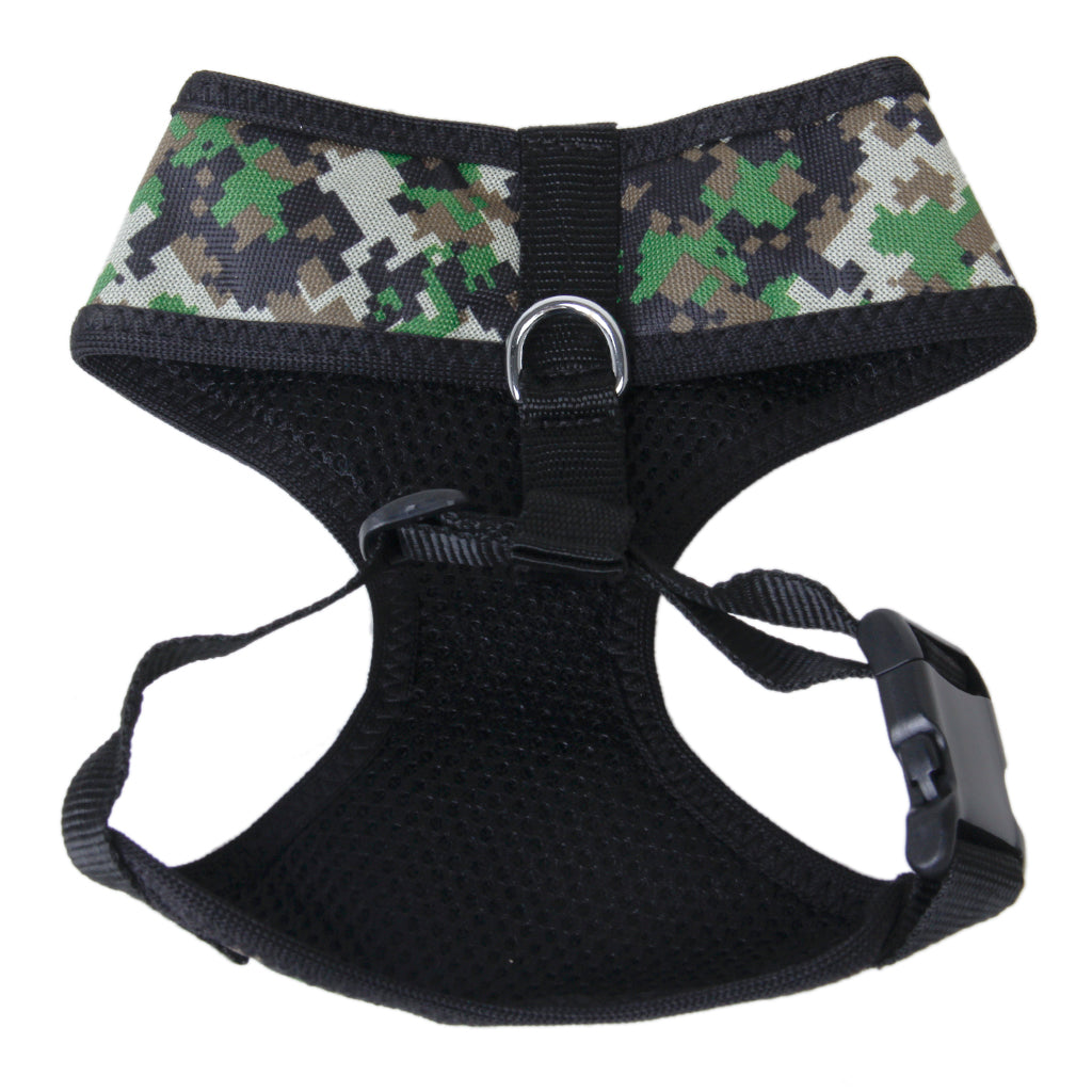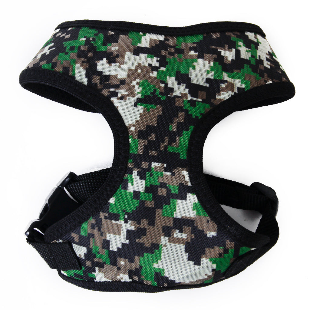 This cool camo color and high quality harness is just what your doggie needs!