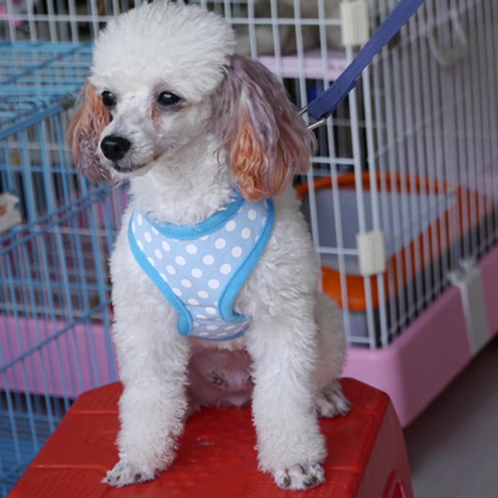 Pet Dog Soft Mesh Harness Clothes M - Blue with White Dots