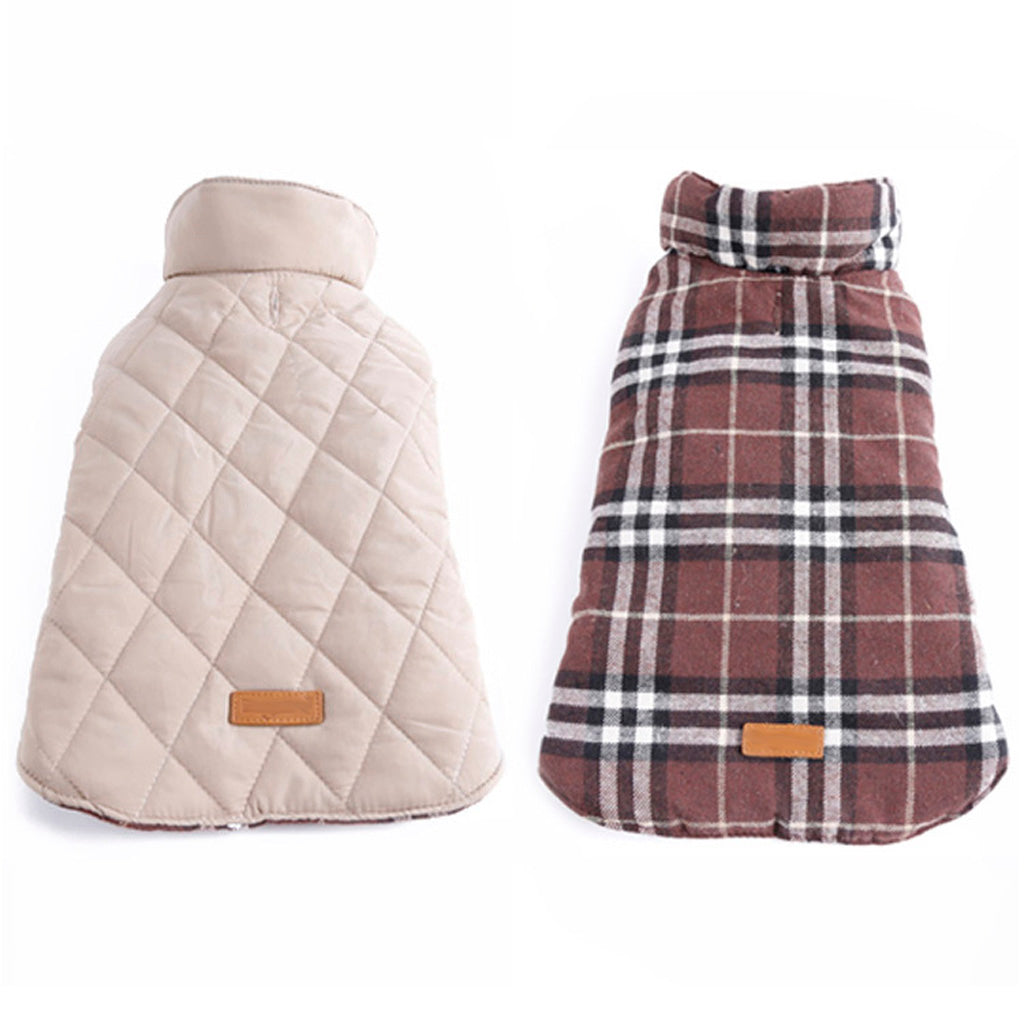 Pet Dog Waterproof Reversible Plaid Jacket Coat Winter Clothes Brown XS