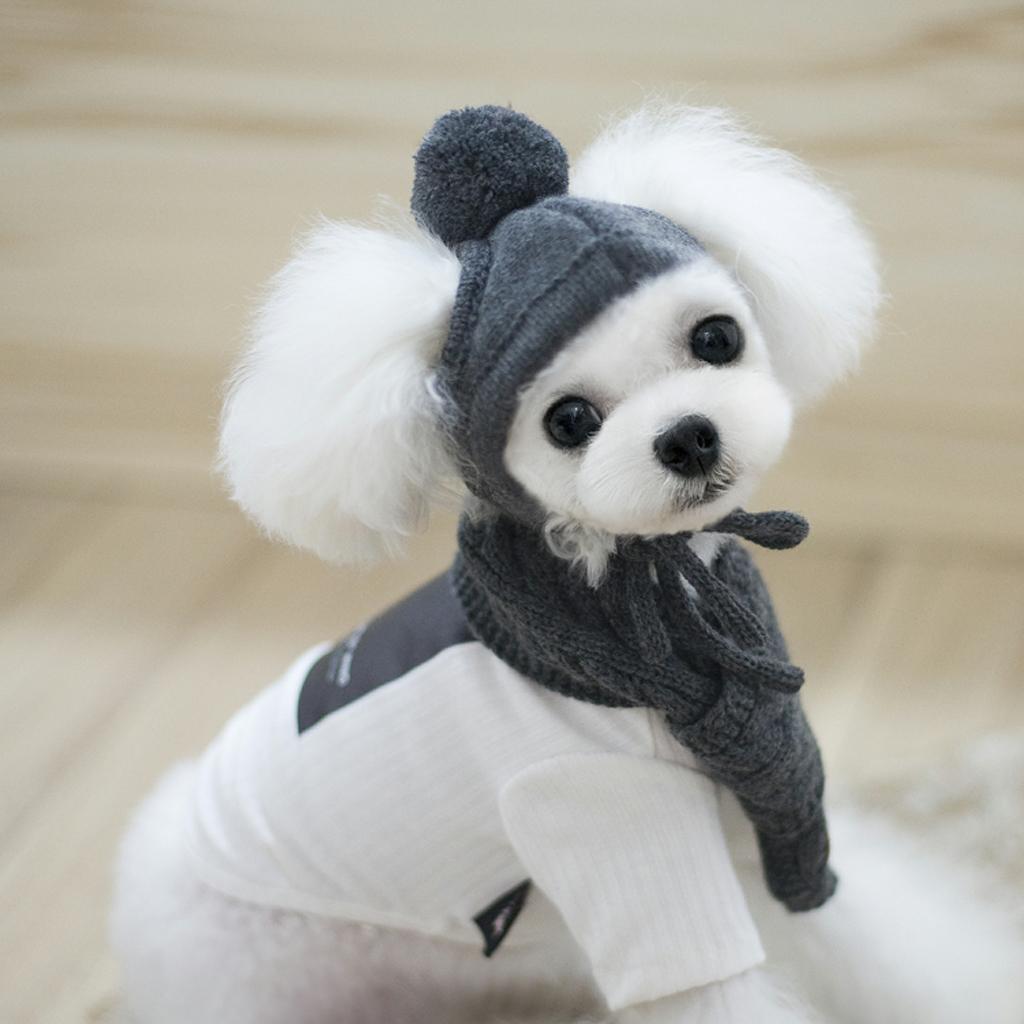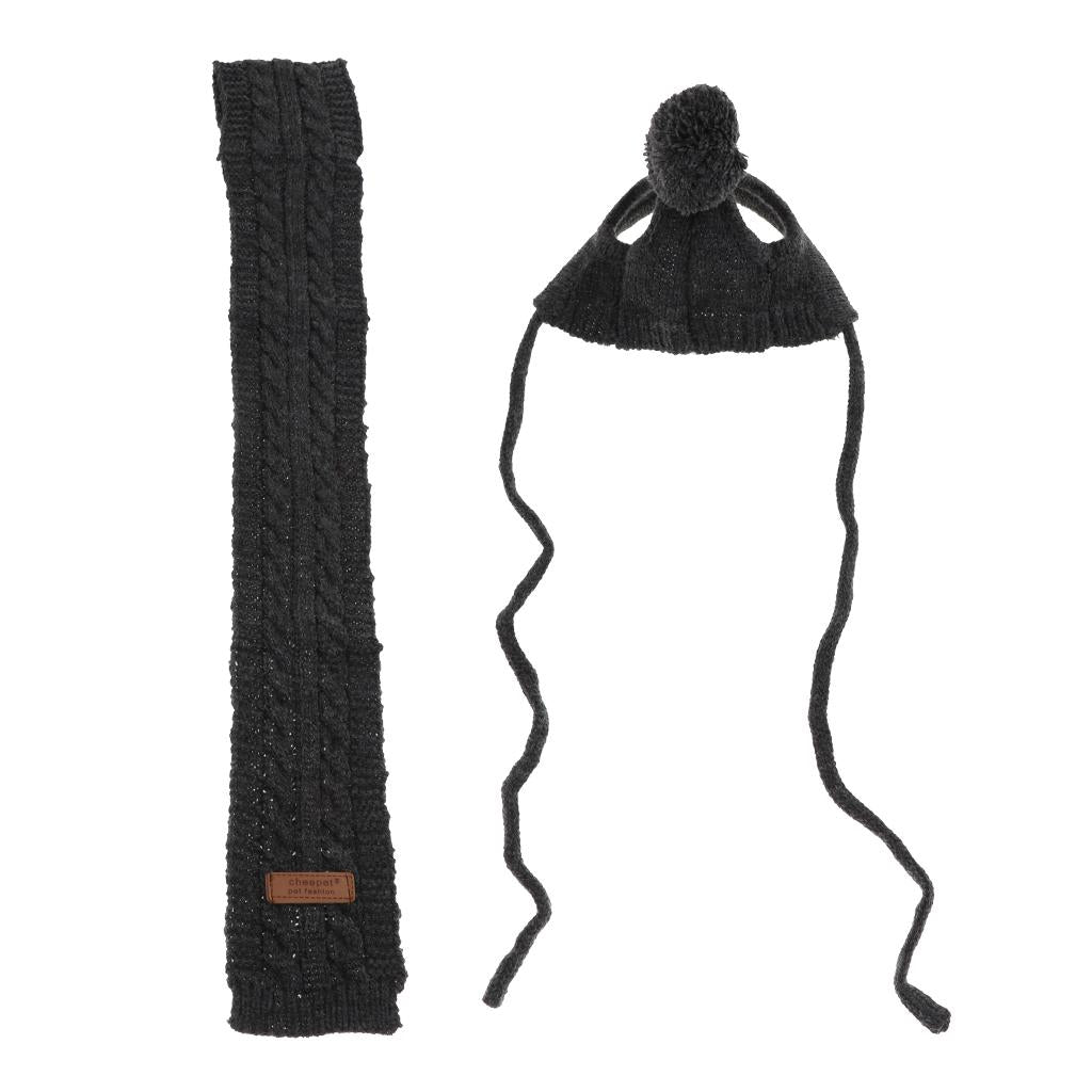 Pet Hat & Scarf Set Dog Knitted Warmer Puppy Costume Pets Accessories Gray M