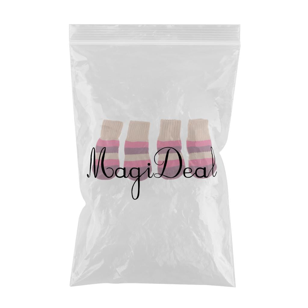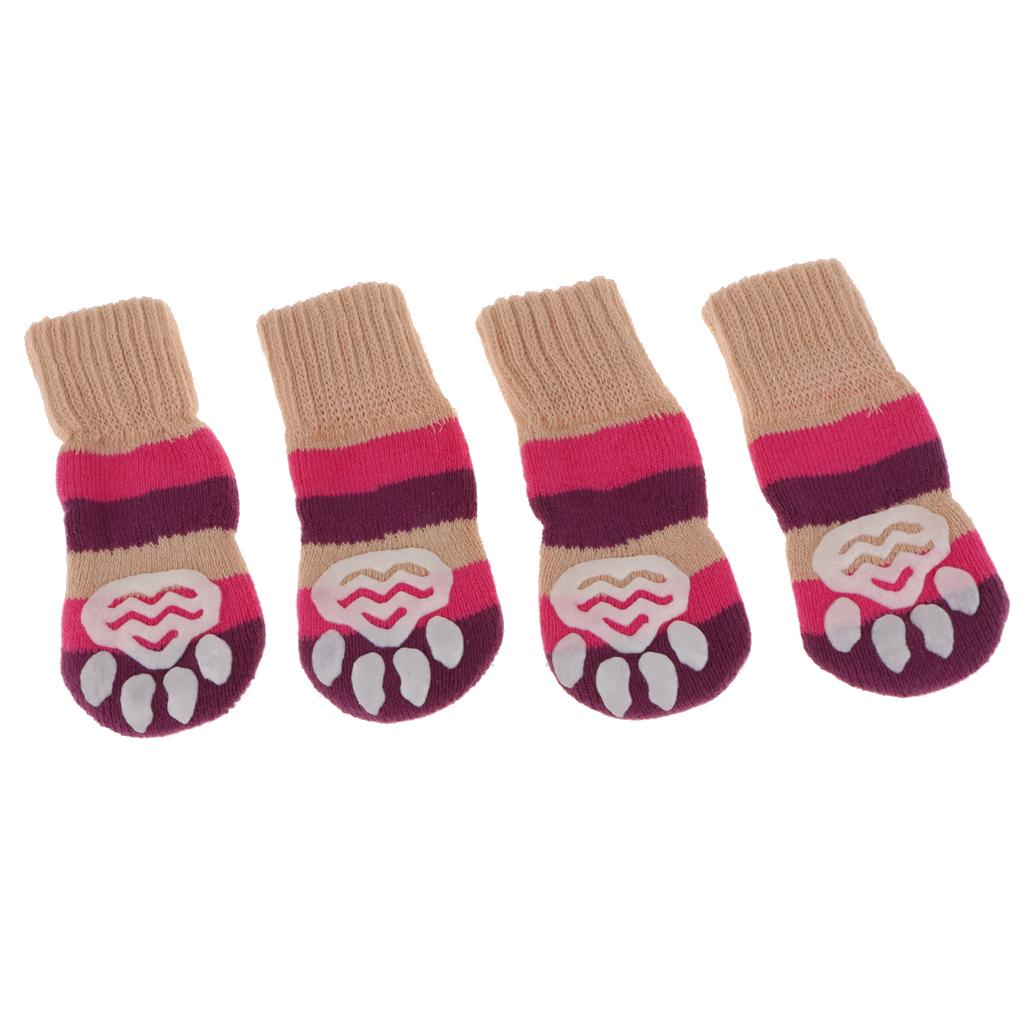 Pet dog winter socks with cute paw prints, colorful stripe pattern;